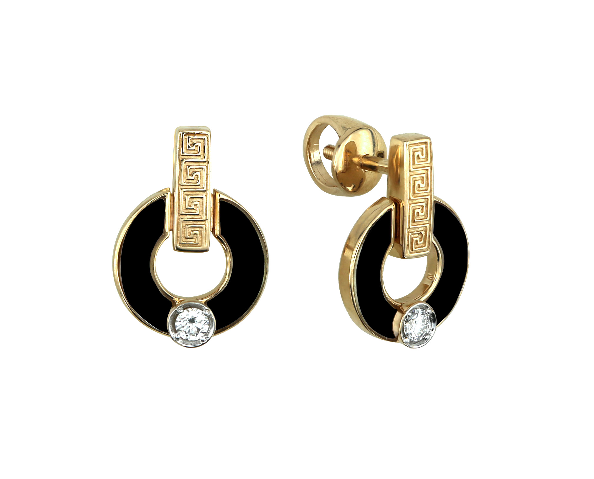 Серьги из лимонного золота c бриллиантами и ониксом
