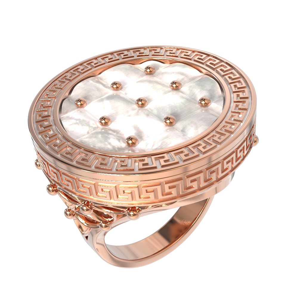 Изысканное кольцо из коллекции De Luxe — Эллада станет воплощением вашего безупречного вкуса и статуса. Это уникальное ювелирное изделие, выполненное из красного золота 585 пробы, гармонично сочетает в себе классические традиции и современные дизайнерские решения. В центре внимания — роскошная вставка из перламутра, дополненная элементами эмали. Белый перелив перламутра создает мягкое свечение, которое подчеркивает благородный оттенок красного металла. Круглая форма вставок придает украшению завершенность и геометрическую стройность.