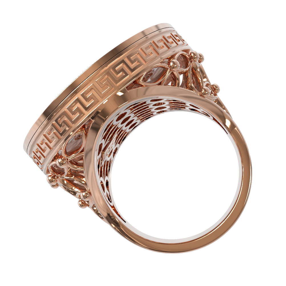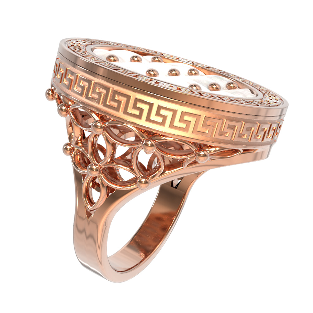 Это ювелирное украшение гармонично вписывается в концепцию создания полноценных комплектов — вы можете сочетать его с другими изделиями аналогичного стиля. Надежное красное золото 585 пробы гарантирует долговечность и сохранение первозданного вида украшения на долгие годы. Выбирая кольцо из коллекции De Luxe — Эллада, вы отдаете предпочтение качеству и уникальному авторскому дизайну, который не теряет своей актуальности. Позвольте себе роскошь быть в центре внимания с этим выразительным и статусным аксессуаром, который подчеркнет вашу индивидуальность.