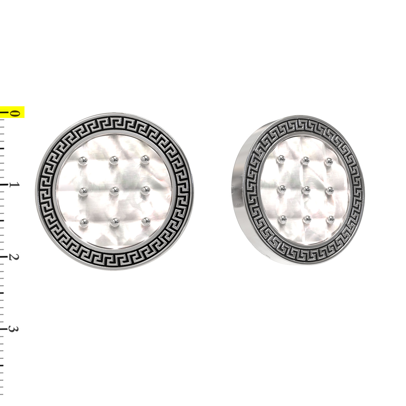 Элегантные и выразительные серьги из коллекции De Luxe — Эллада станут воплощением вашего безупречного вкуса. Это украшение выполнено из благородного белого золота 585 пробы, которое подчеркивает глубину и сияние каждой детали. Дизайн изделия объединяет классические формы и античные мотивы, создавая гармоничный образ для ценителей утонченности. Лаконичная круглая форма дополняется эффектной вставкой из нежного перламутра, чье перламутровое мерцание мягко контрастирует с черной эмалью.