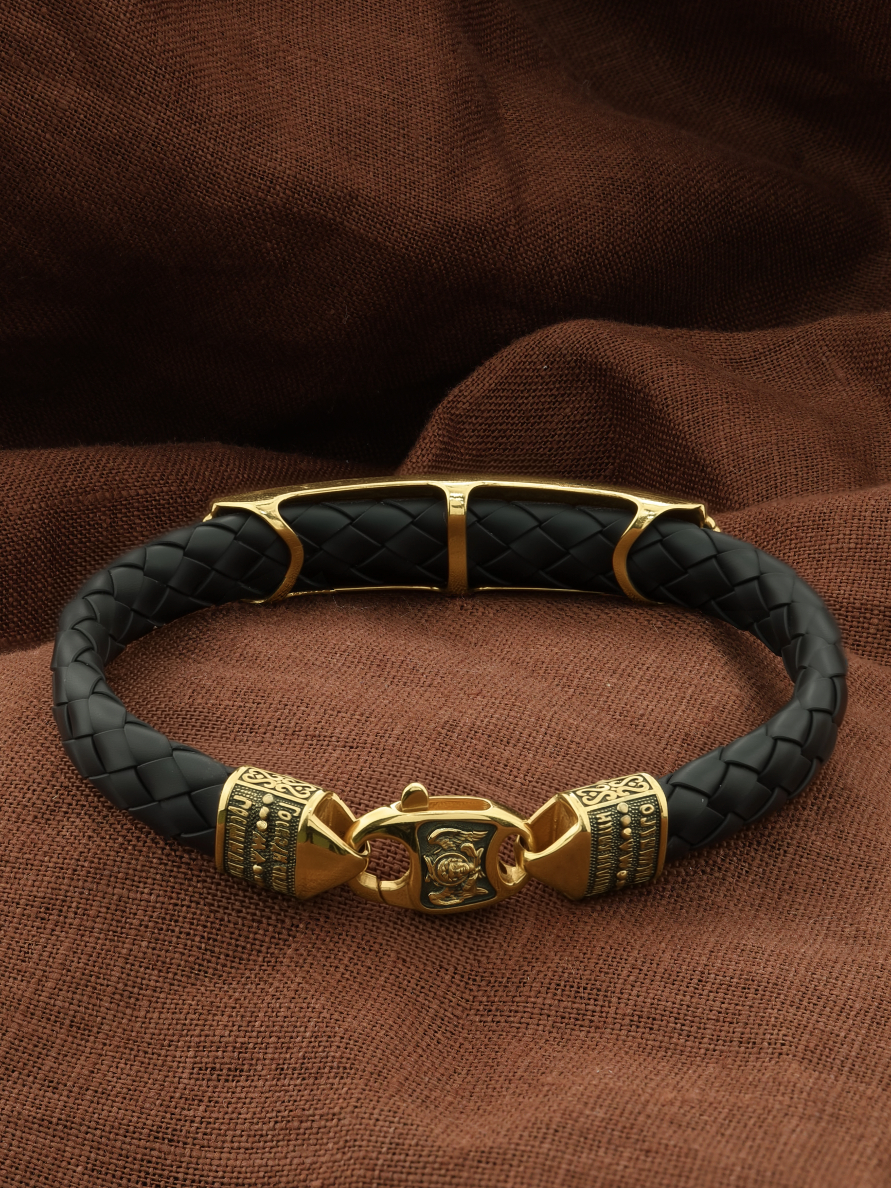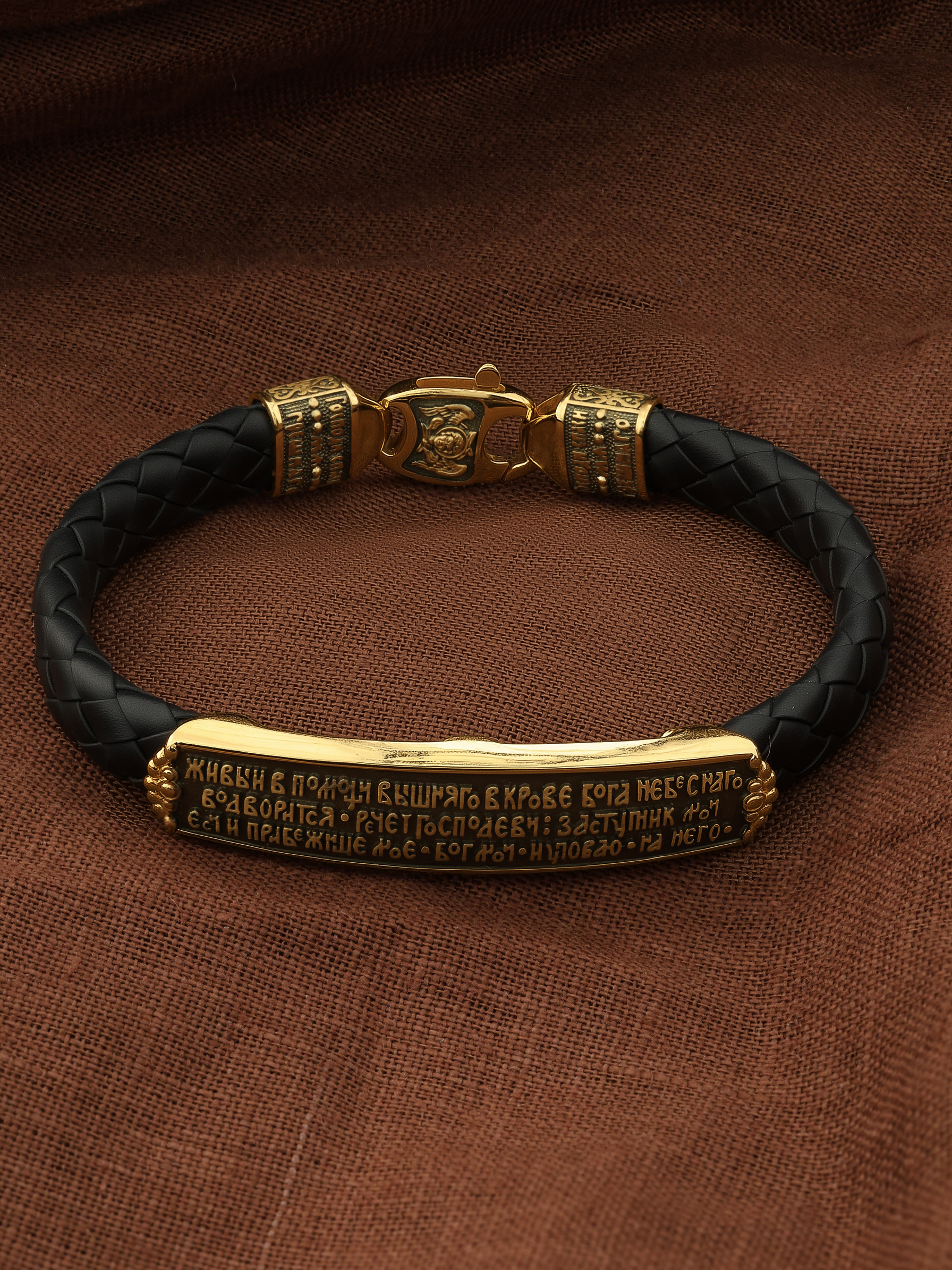 На основном звене браслета написана молитва: «Живый в помощи Вышняго, в крове Бога Небеснаго водворится. Речет Господеви: Заступник мой еси и Прибежище мое, Бог мой, и уповаю на Него.»
