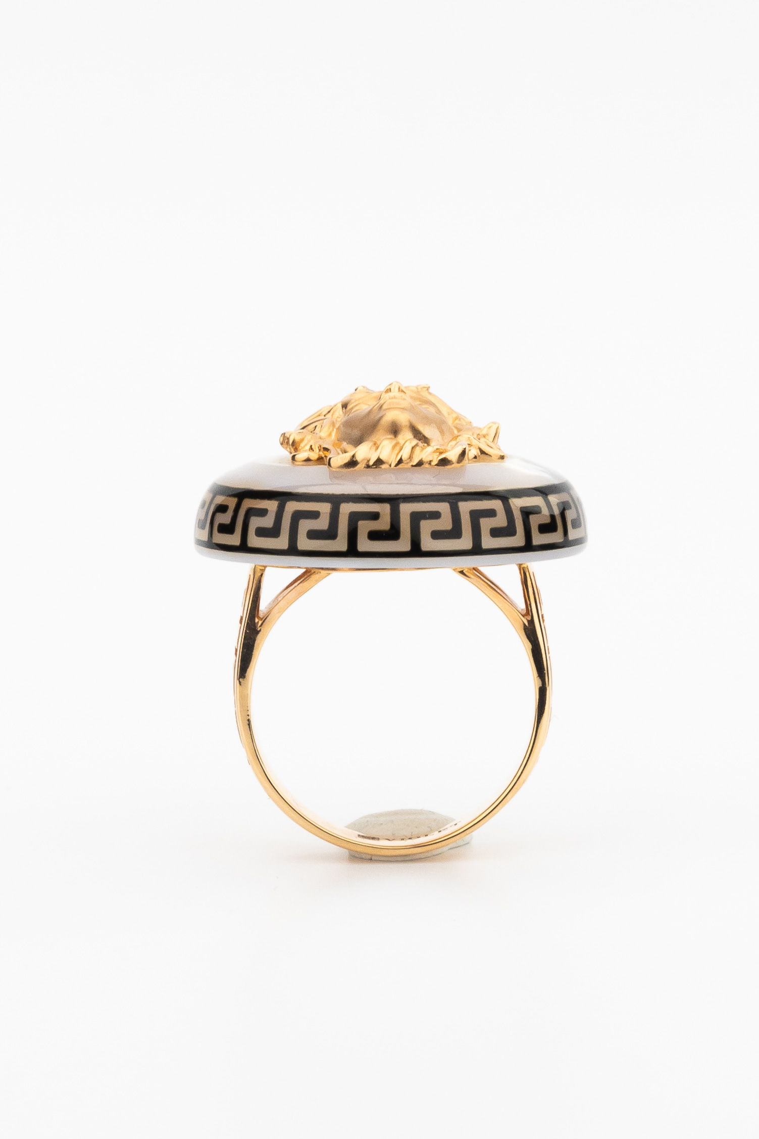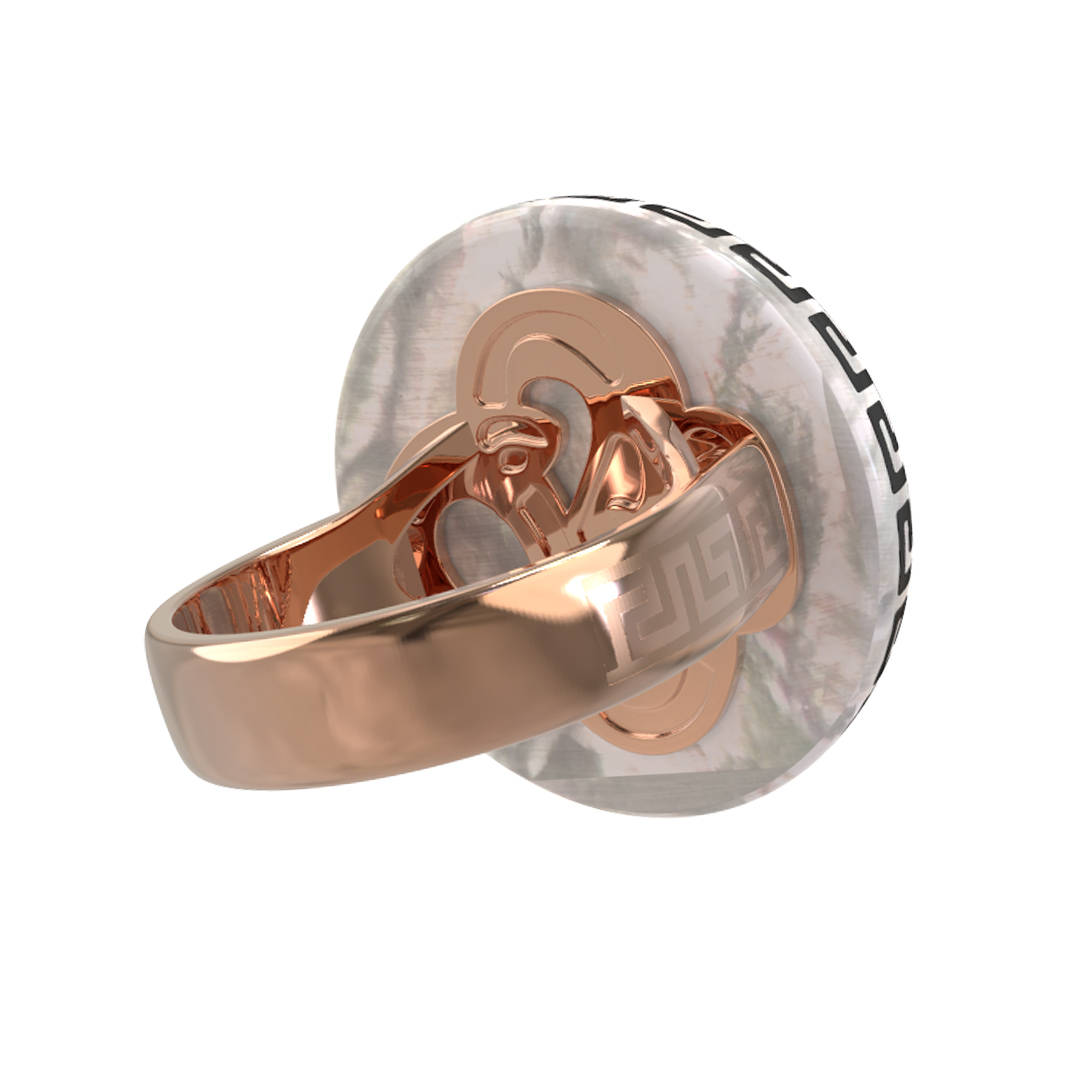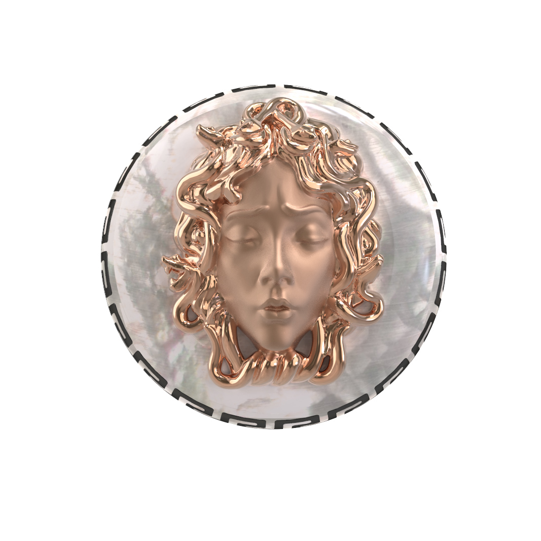 Откройте для себя воплощение мифологического искусства в этом изысканном кольце из коллекции De Luxe — Медуза. Данное изделие выполнено из красного золота 585 пробы и представляет собой настоящее произведение ювелирного мастерства. Центральным элементом дизайна, вдохновленного античными мифами, является детализированное изображение лика, обрамленное в круглую форму. Контрастное сочетание теплого оттенка красного золота, нежного перламутра и акцентной черной эмали создает гармоничную и притягательную композицию, которая сразу обращает на себя внимание.
