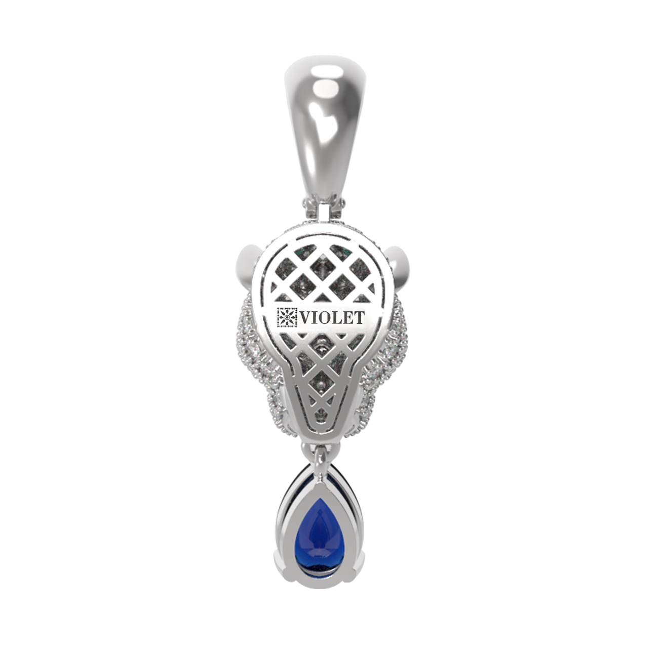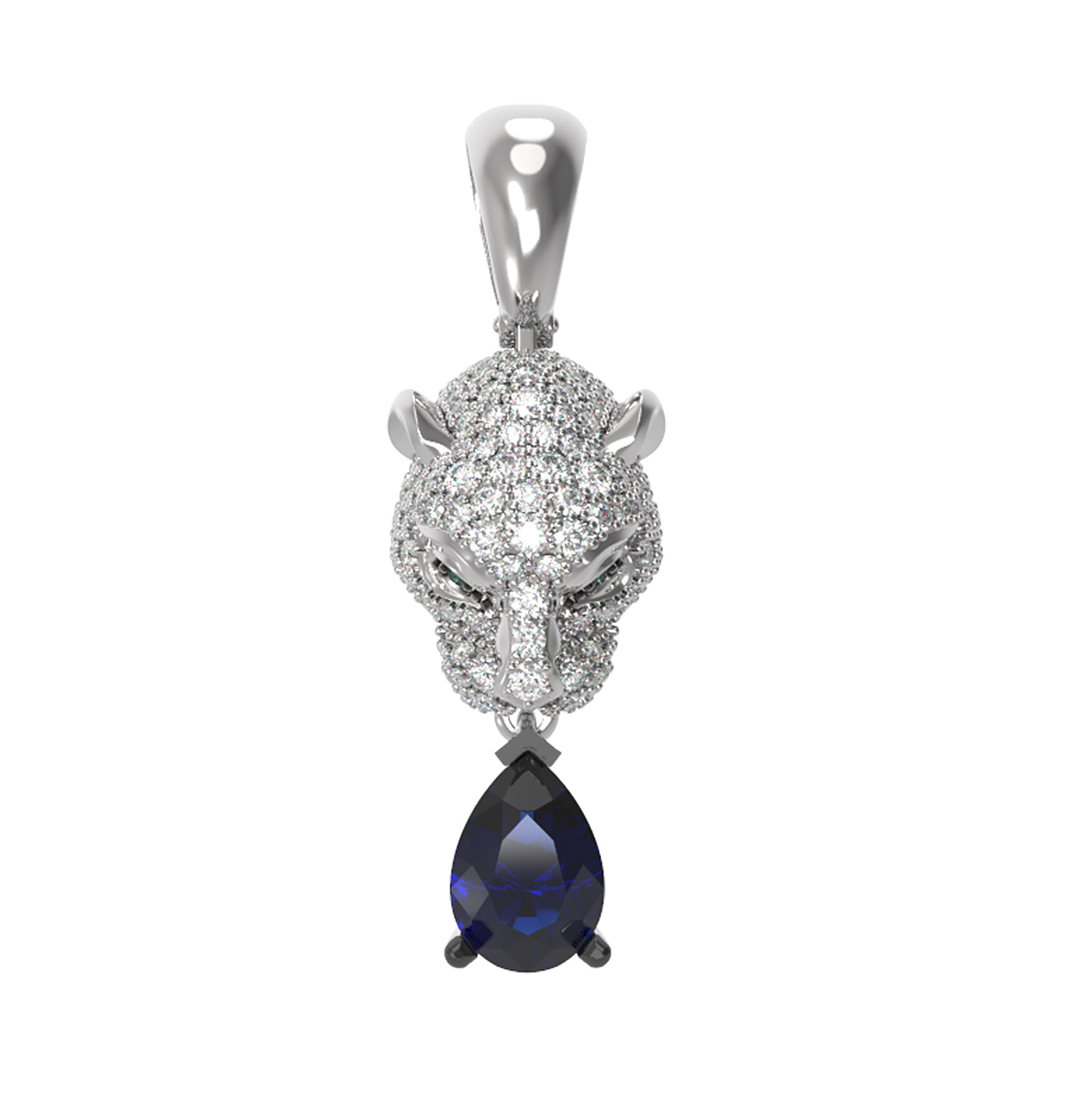 Благородный блеск белого металла гармонично подчеркивает чистоту камней круглой и грушевидной формы. Крупный сапфир в форме груши эффектно завершает композицию, придавая украшению динамику и аристократичный шик. Это универсальное ювелирное изделие одинаково стильно смотрится как на женщинах, так и на мужчинах, подчеркивая статус и безупречный вкус владельца.