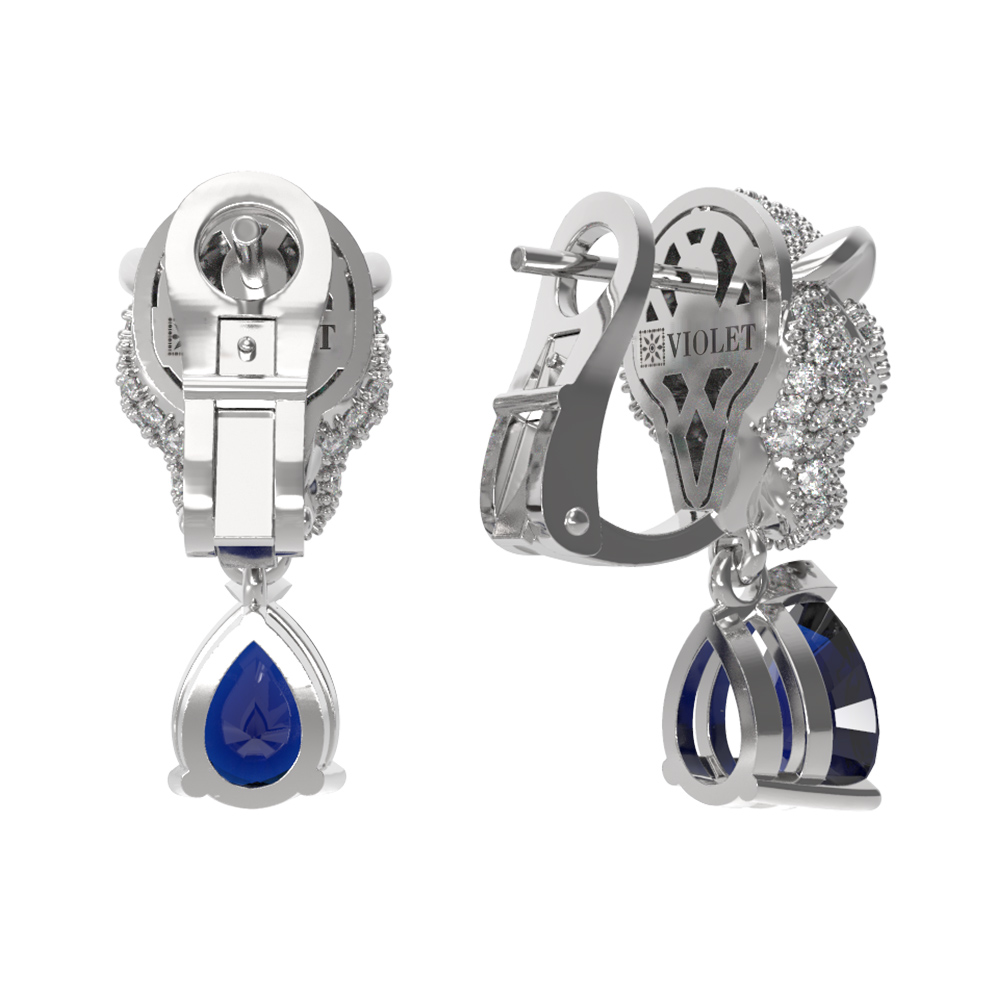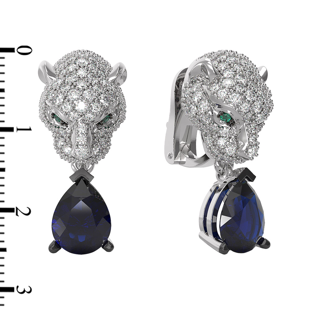 Серьги из белого золота c бриллиантами, сапфиром и изумрудом