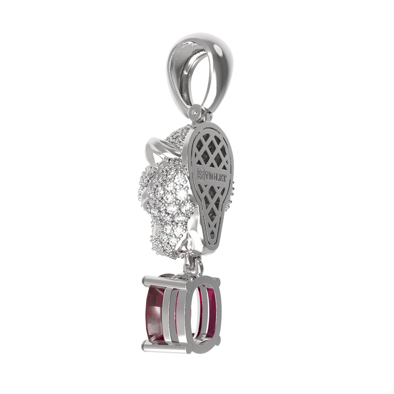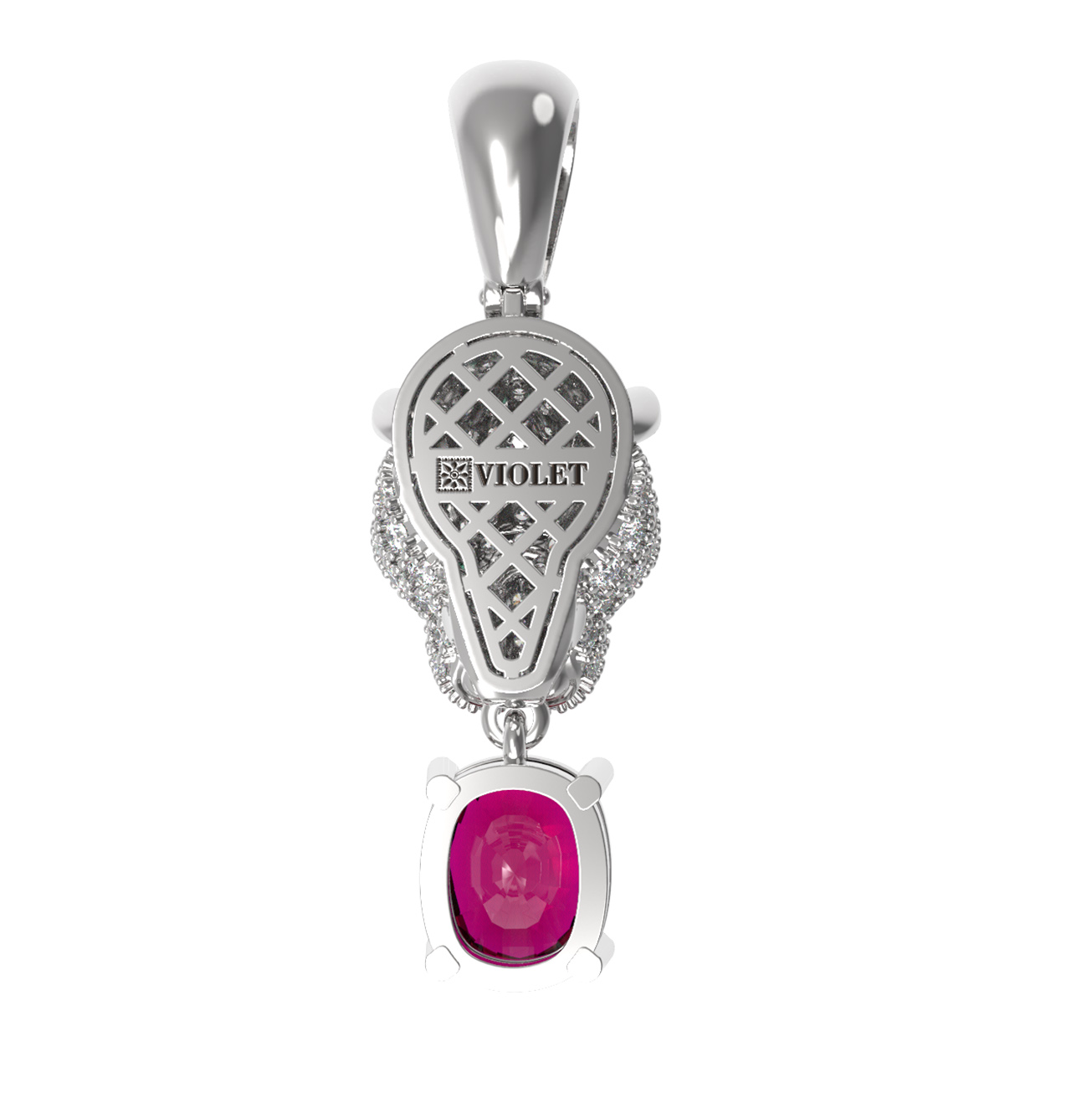 Подвеска из белого золота c бриллиантами, рубином и изумрудом
