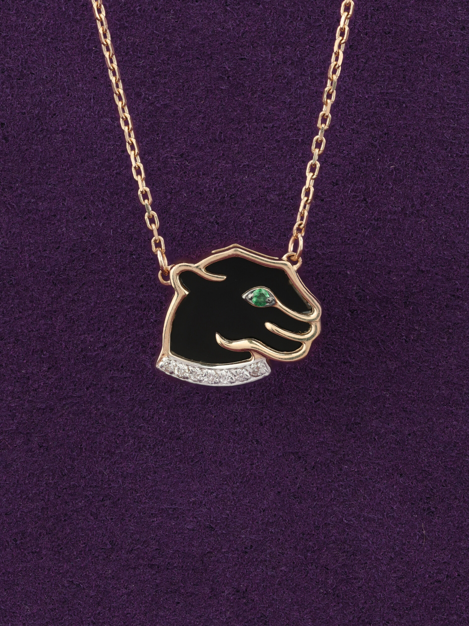 Колье из золота c бриллиантами, изумрудом и ониксом
