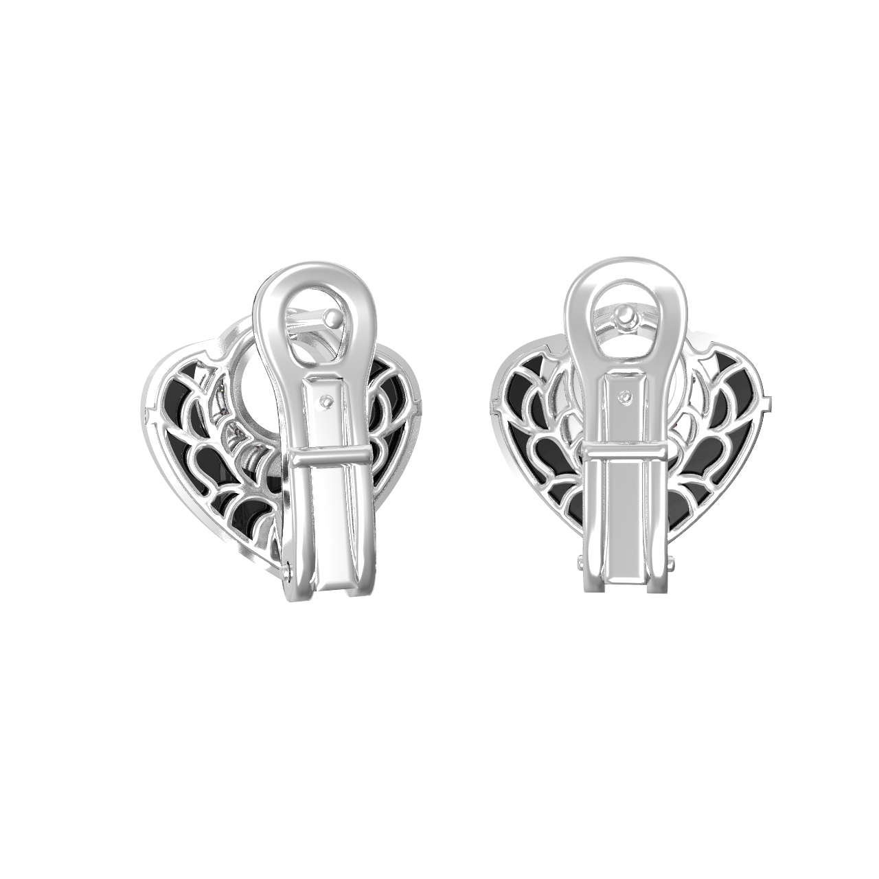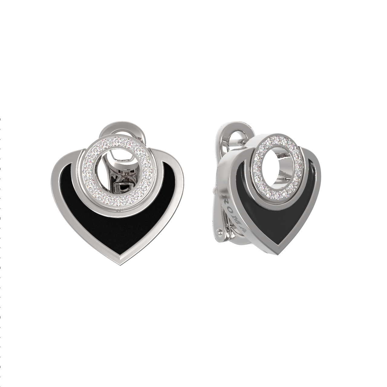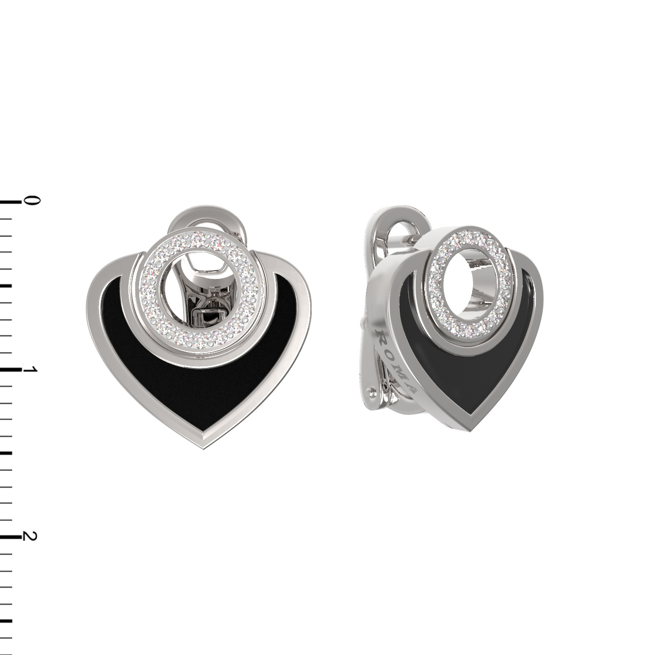 Основным акцентом композиции выступает гармоничное сочетание вставок: глубокий черный оникс в форме сердца обрамлен сияющим кругом, усыпанным 34 бриллиантами. Белый цвет бриллиантов создает эффектный контраст с темной вставкой, придавая изделию статусность и премиальный вид. Надежный замок обеспечивает комфортную посадку, позволяя носить эти серьги ежедневно или дополнять ими вечерний образ.