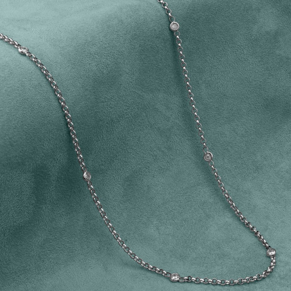 Цепь из белого золота с фианитами выглядит эффектно как самостоятельное украшение, так и в составе комплекта. Благодаря своей универсальности, такое изделие легко впишется в гардероб, добавляя нотку роскоши в повседневный или вечерний стиль. Высокое качество исполнения и выверенный дизайн делают это украшение отличным подарком для ценителей минимализма и стиля.