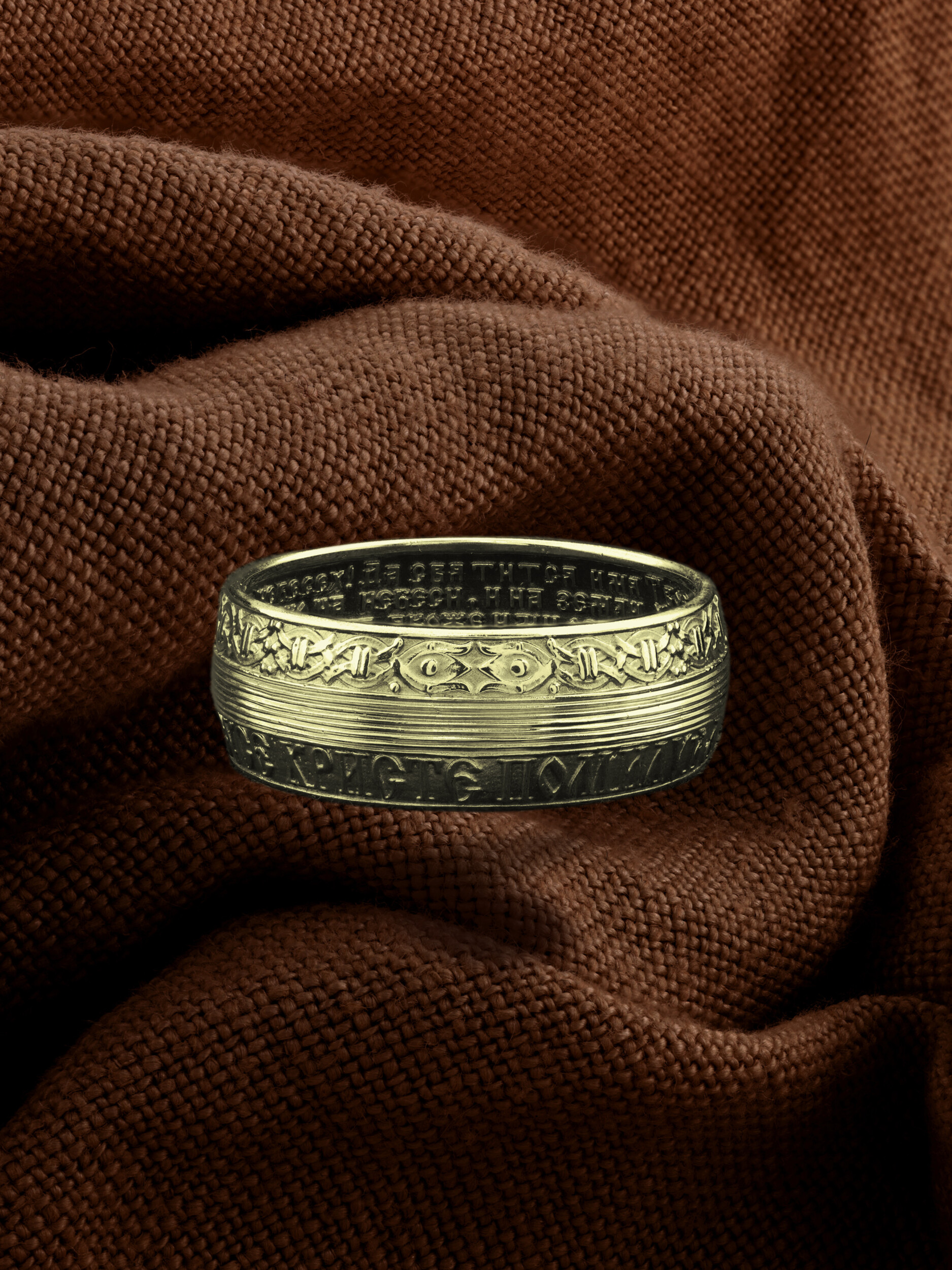 На внутренней стороне кольца написан полный текст молитвы «Отче наш».
