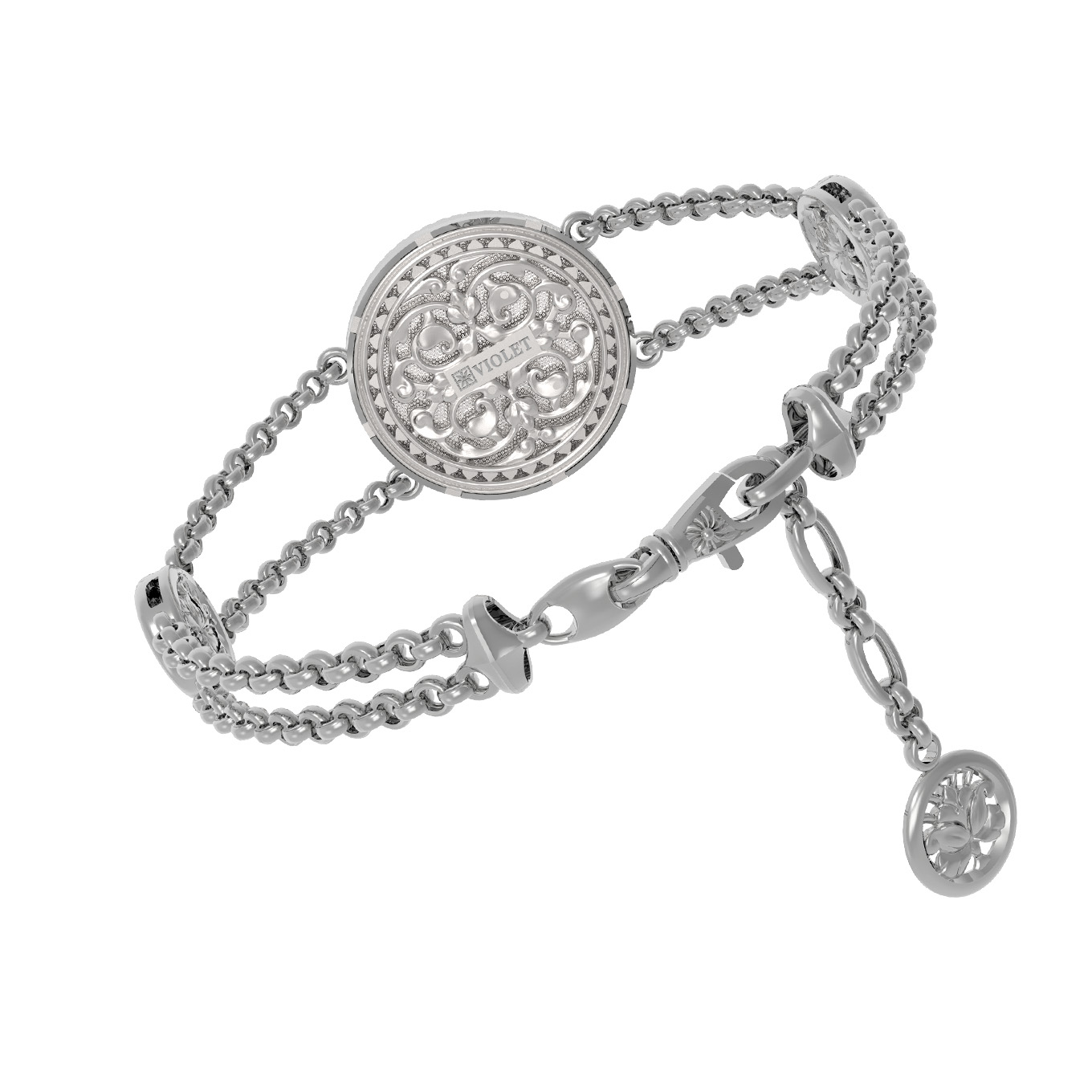 Дизайн браслета сочетает в себе благородство материалов и смелость художественного замысла. Двойная цепочка обеспечивает комфортное прилегание к запястью и придает аксессуару объем и легкость. Это универсальное украшение, которое подходит как для женщин, так и для мужчин, предпочитающих статусные и необычные аксессуары. Браслет станет ярким акцентом вашего образа, подчеркивая индивидуальность и безупречный вкус.