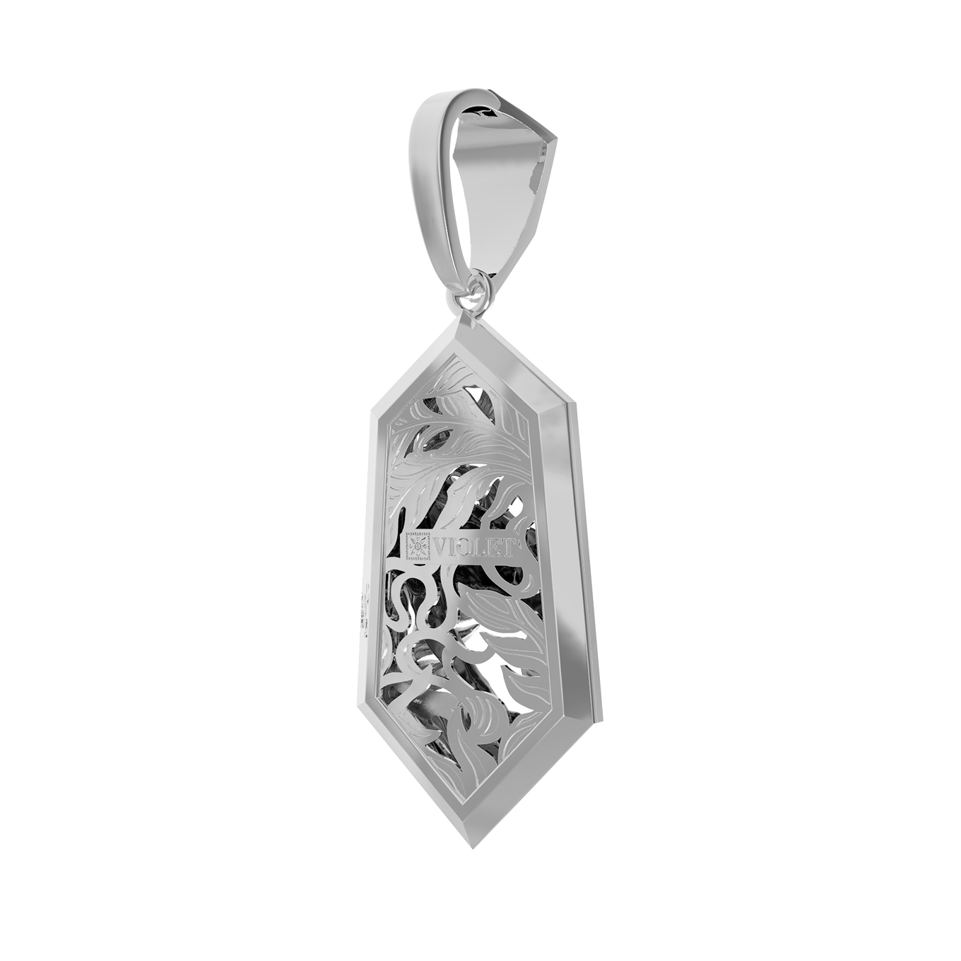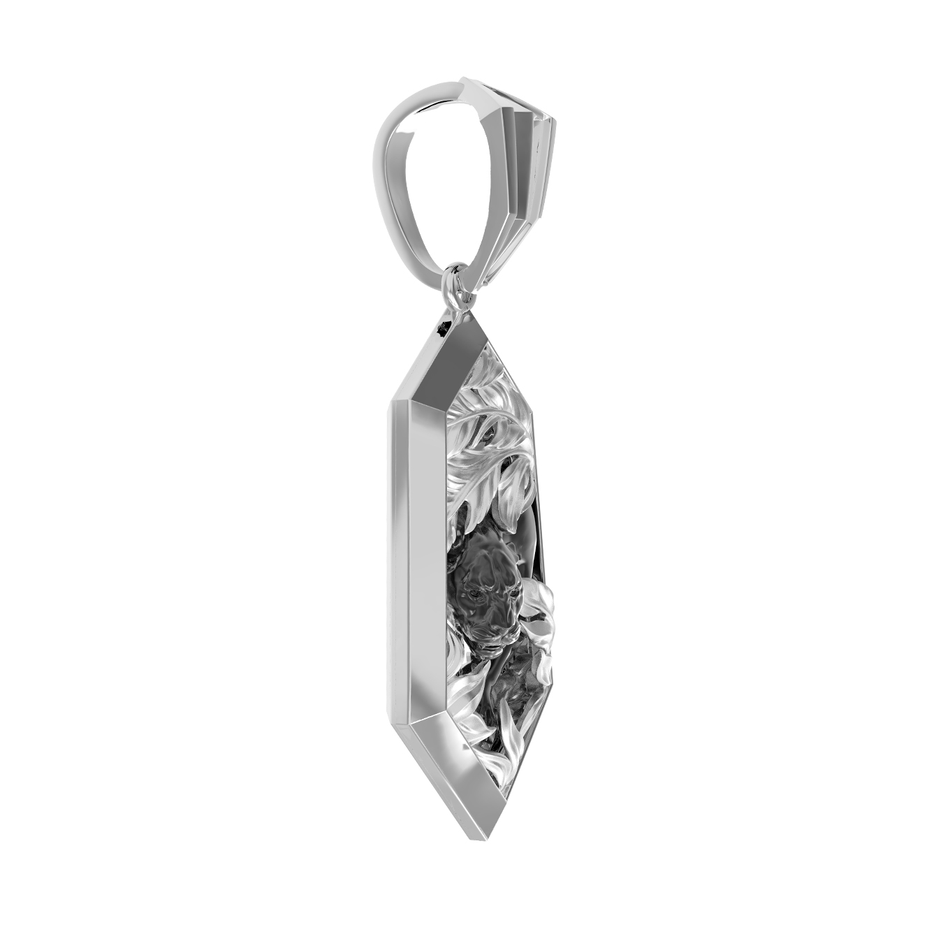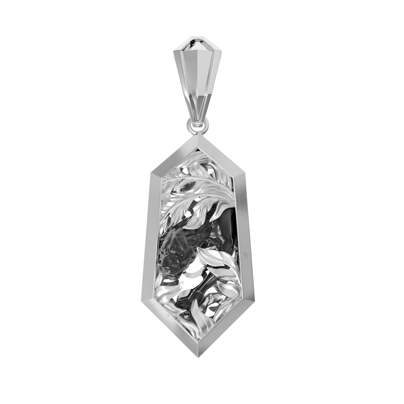 Подвеска из белого золота — это воплощение силы и стиля, созданное для современных мужчин, которые ценят статус и уникальность. Украшение входит в престижную серию De Luxe — Пантера и представляет собой настоящий шедевр ювелирного мастерства. В дизайне изделия гармонично сочетаются строгость геометрических форм и динамика дикой природы. Центральным элементом композиции является искусная фигура пантеры, замершей в грациозном движении среди стилизованной листвы.