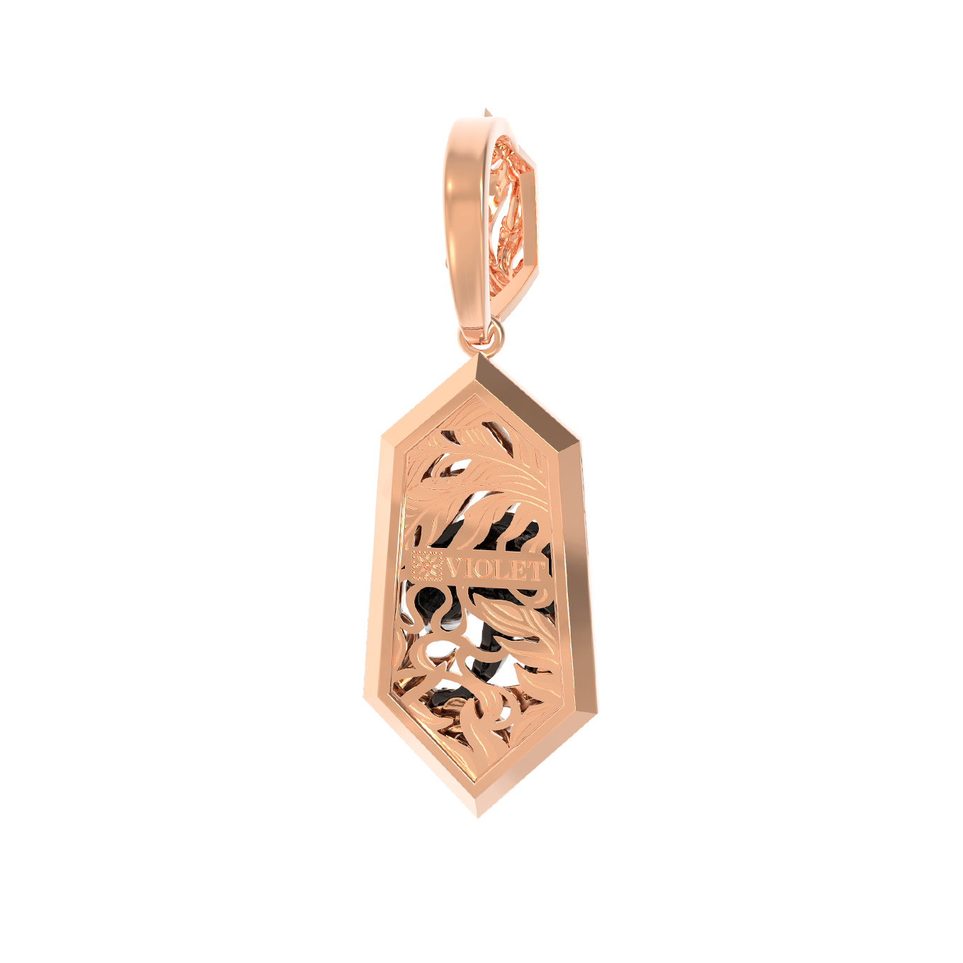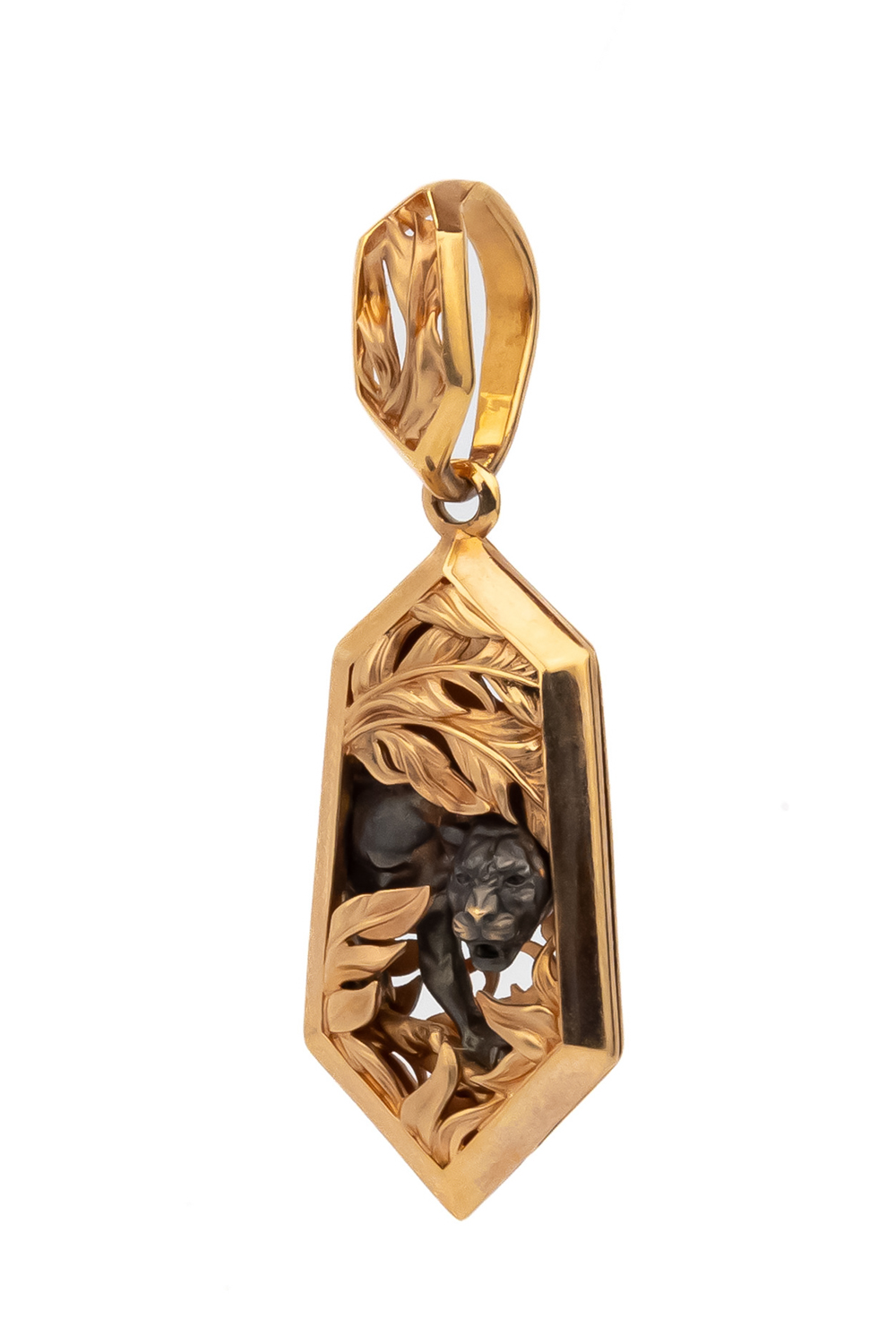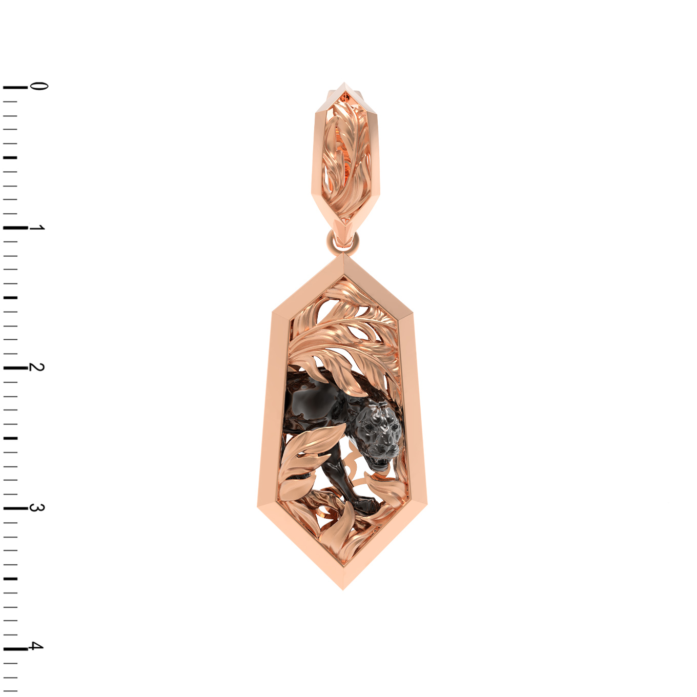 Подвеска из красного золота 585 пробы из коллекции De Luxe — Пантера создана для мужчин, которые ценят смелый дизайн и безупречное ювелирное исполнение. Это украшение станет выразительным акцентом вашего образа, подчеркивая статус и уверенность владельца. В центре композиции находится детально проработанное изображение пантеры, грациозно скрывающейся в густых тропических зарослях. Контрастное сочетание красного золота и темных элементов декора создает эффект глубины и придает изделию особую выразительность.