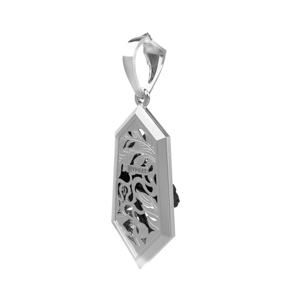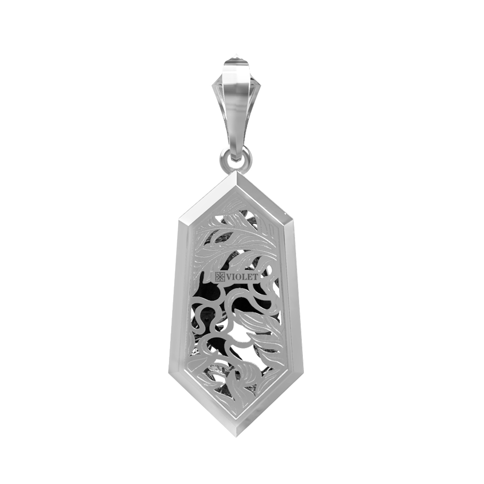 Изделие выполнено в холодном белом цвете, что придает украшению сдержанный и благородный вид. Геометрическая форма подвески подчеркивает строгость линий, делая аксессуар универсальным дополнением как к повседневному, так и к вечернему образу. Качественная обработка металла обеспечивает долговечность и безупречный блеск на долгие годы.