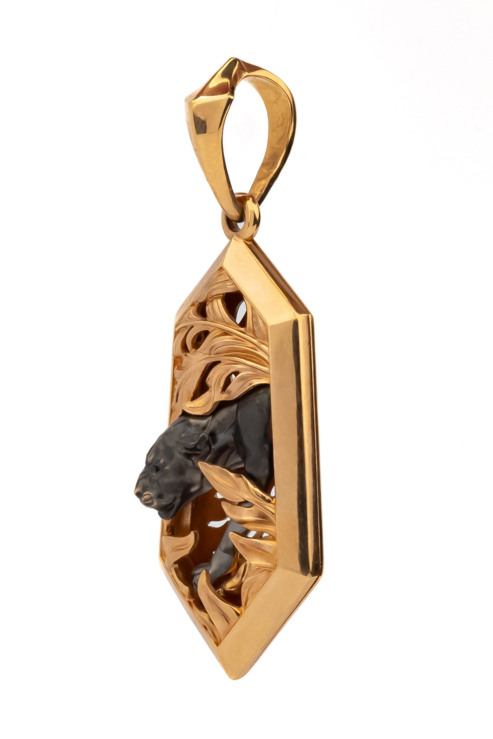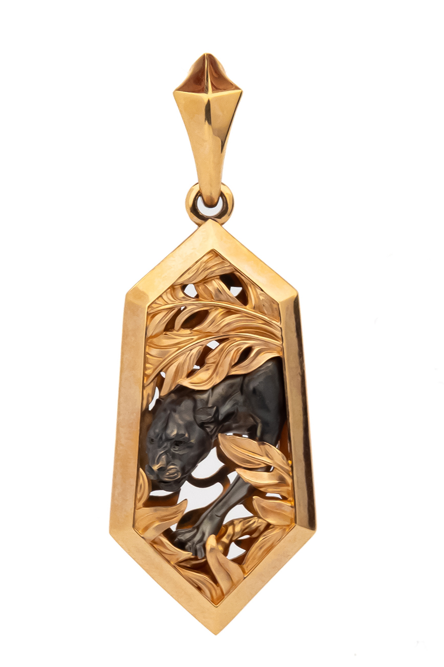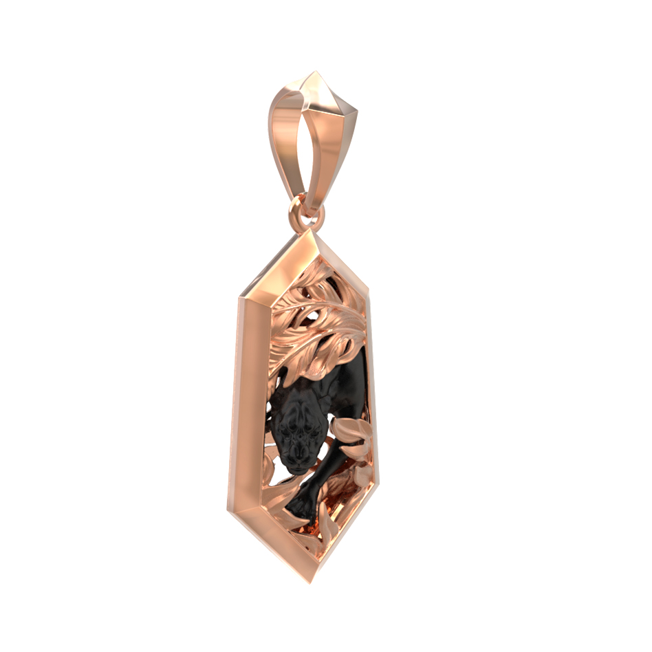 Мужская подвеска из красного золота 585 пробы — это воплощение уверенности и дерзкого стиля. Украшение, входящее в изысканную коллекцию De Luxe — Пантера, привлекает внимание своей детализацией и оригинальным исполнением. Центральный элемент изделия — грациозная фигура пантеры, выполненная с особой тщательностью, которая словно замерла в густых зарослях джунглей. Контраст между теплым оттенком красного металла и темным силуэтом хищника подчеркивает глубину дизайна.