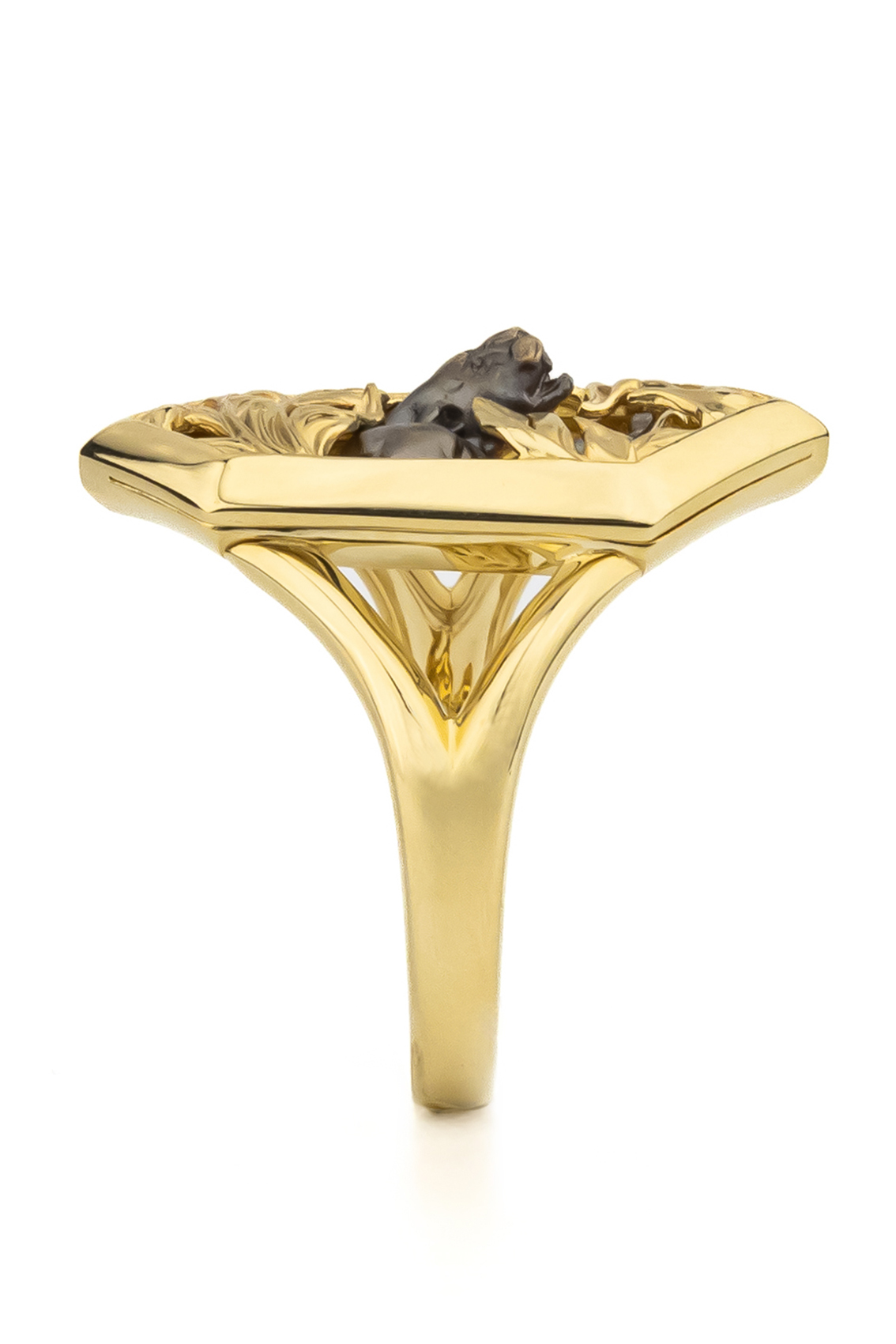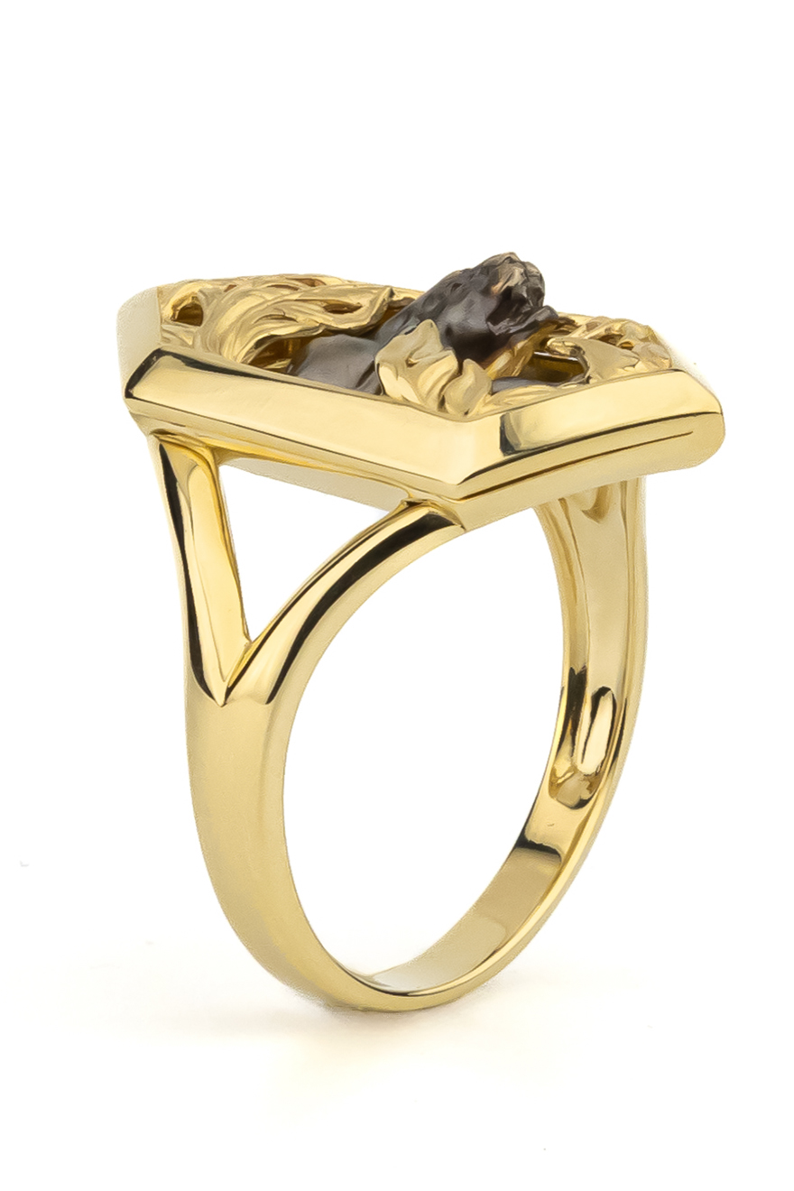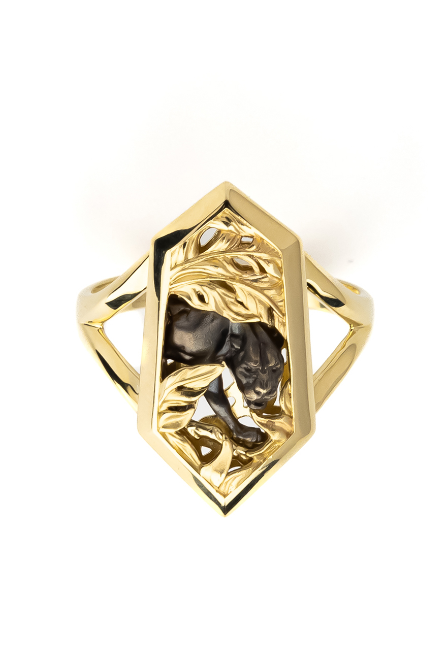 Массивное и выразительное, это украшение выполнено в формате колец-печаток, что делает его универсальным выбором как для женщин, так и для мужчин. Детализированная фигура пантеры в сочетании с благородным блеском металла притягивает взгляд и превращает изделие в центральный акцент образа. Модель отличается гармоничным сочетанием современного стиля и классических ювелирных традиций.