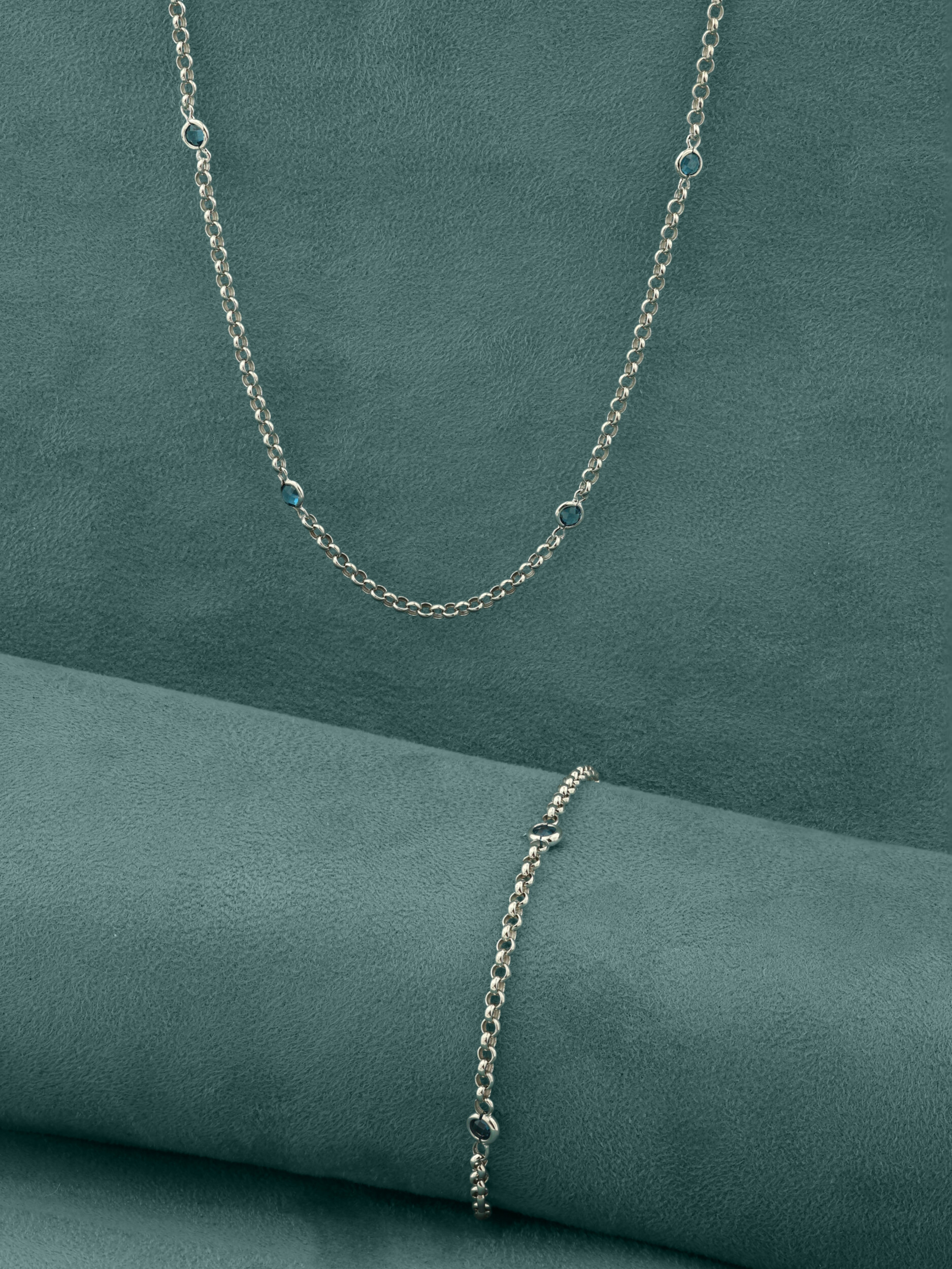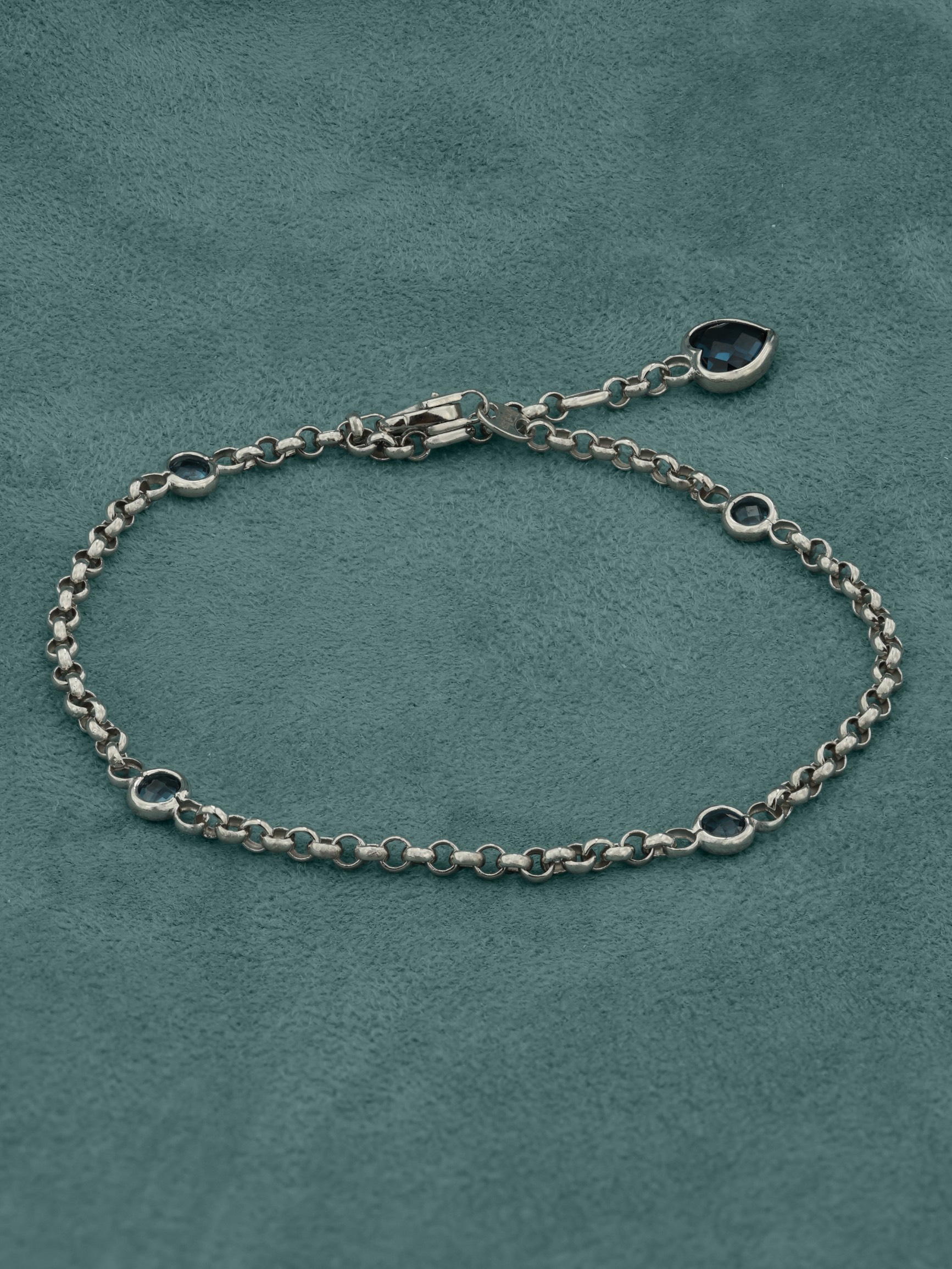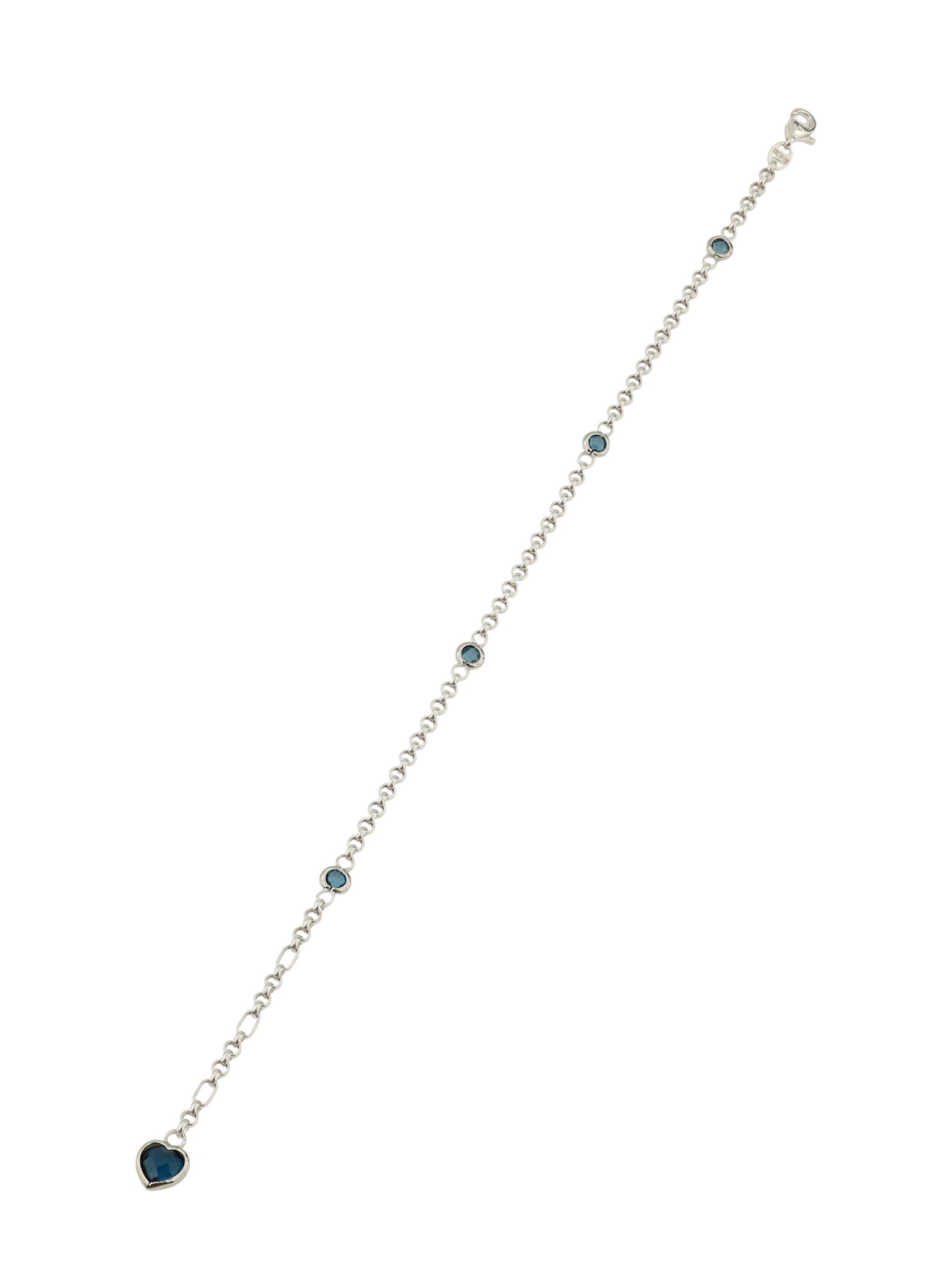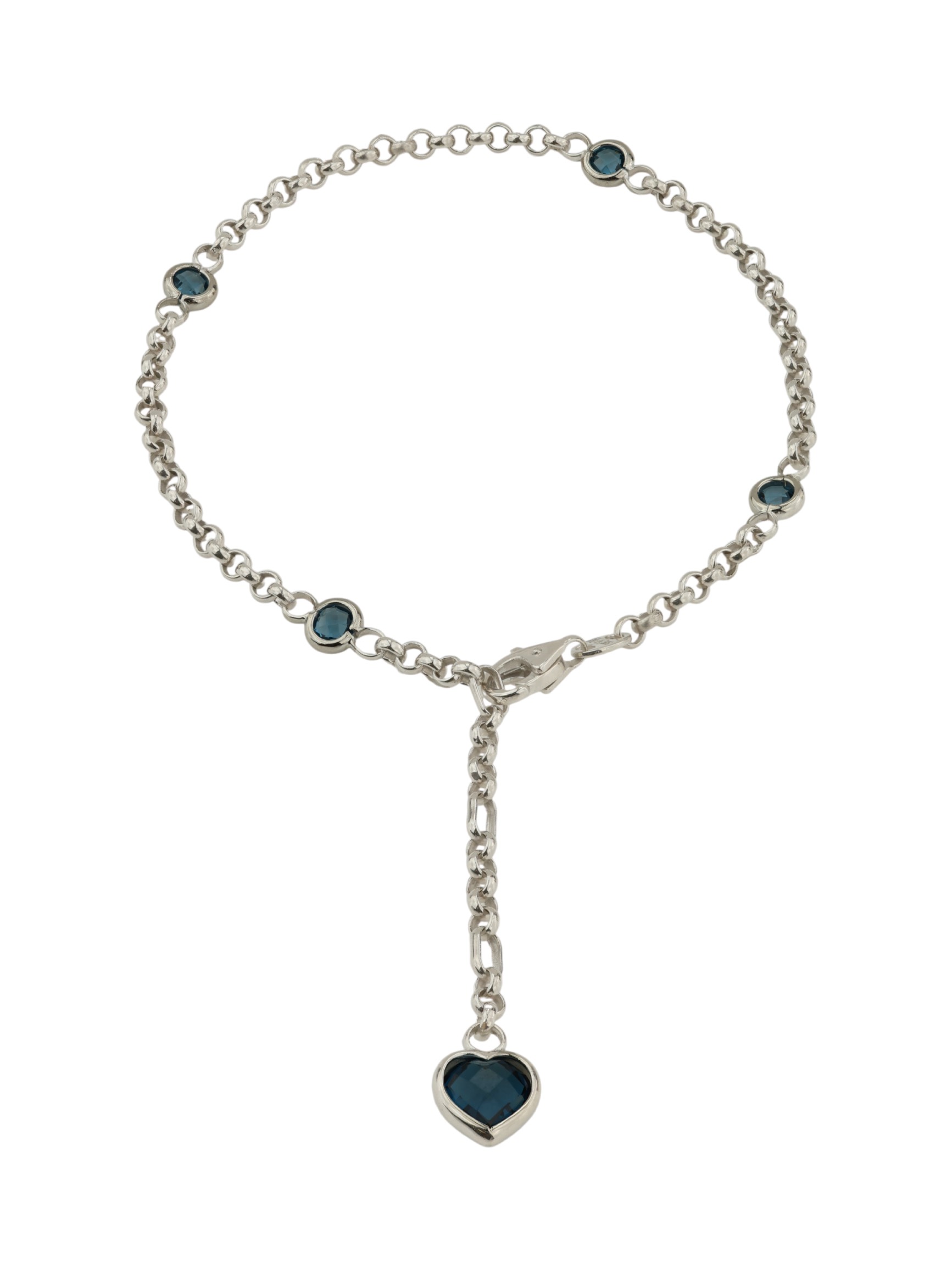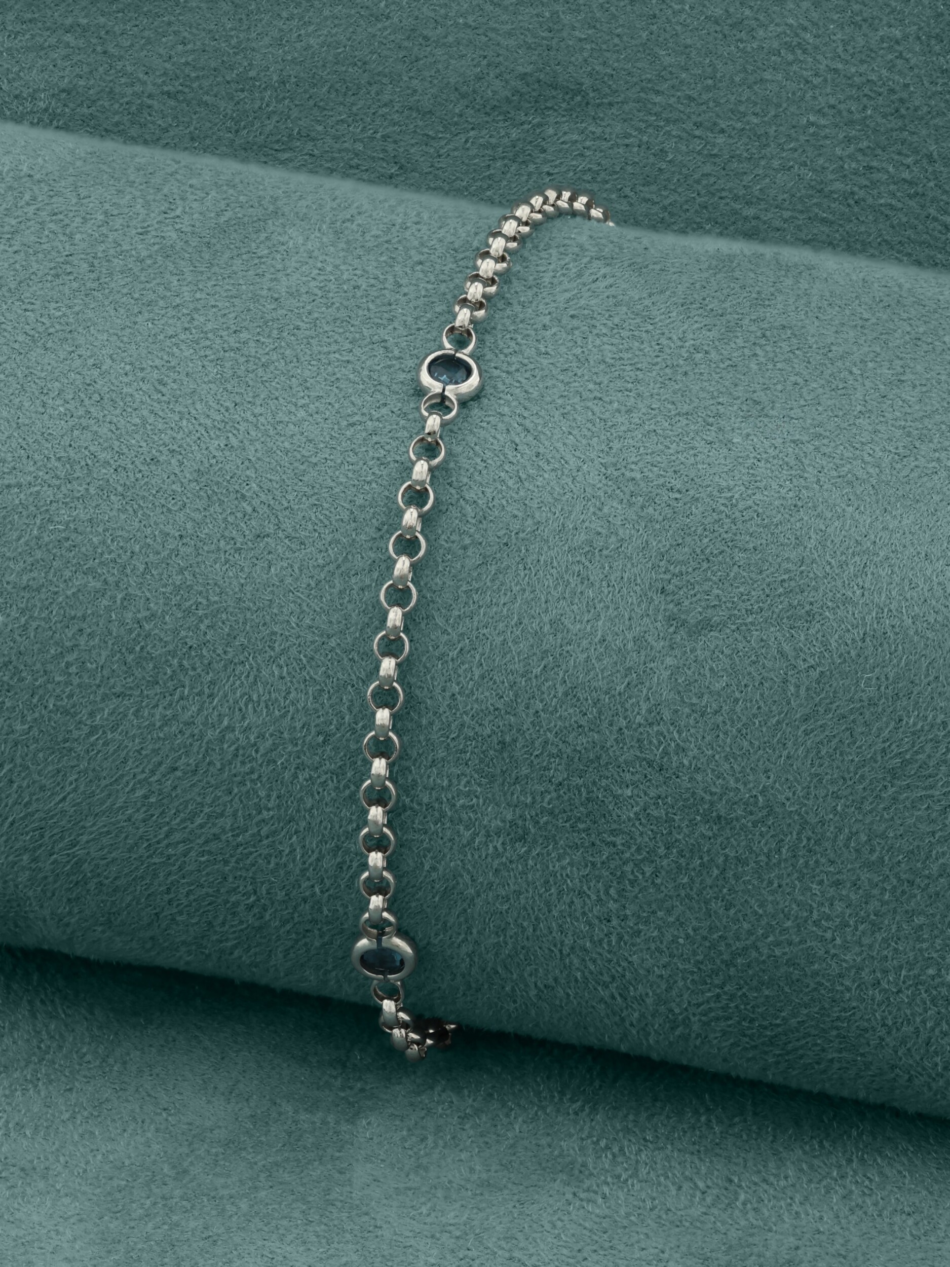 Центральным элементом композиции выступает топаз London голубого цвета, который притягивает взгляд своей глубиной. В данной модели использовано 5 вставок, выполненных в двух формах: круг и сердце. Такое сочетание делает украшение нетривиальным и позволяет ему одинаково эффектно смотреться как на женском, так и на мужском запястье, подчеркивая индивидуальность владельца. Белый цвет материала идеально оттеняет яркость камней, создавая целостный и завершенный облик.