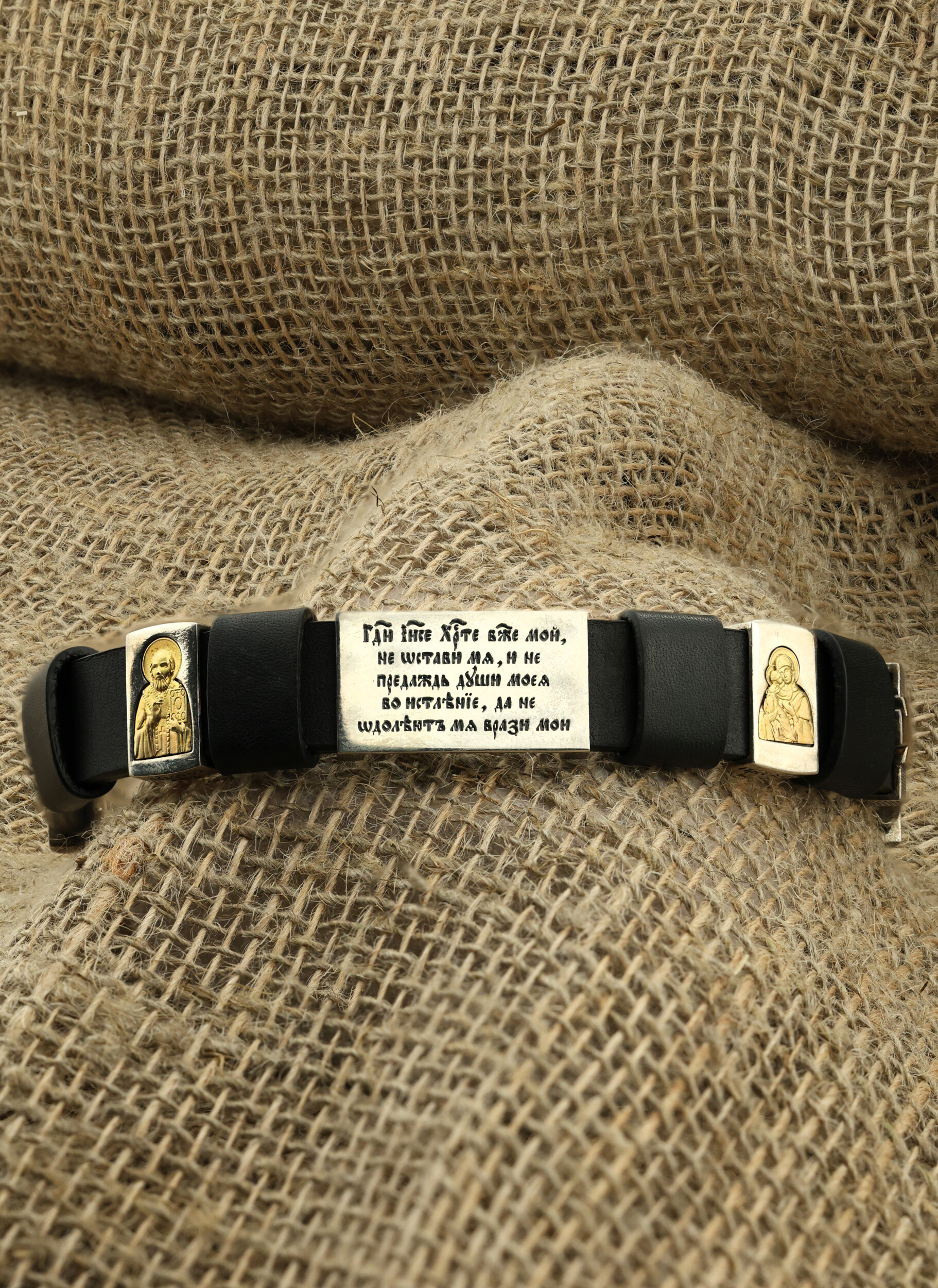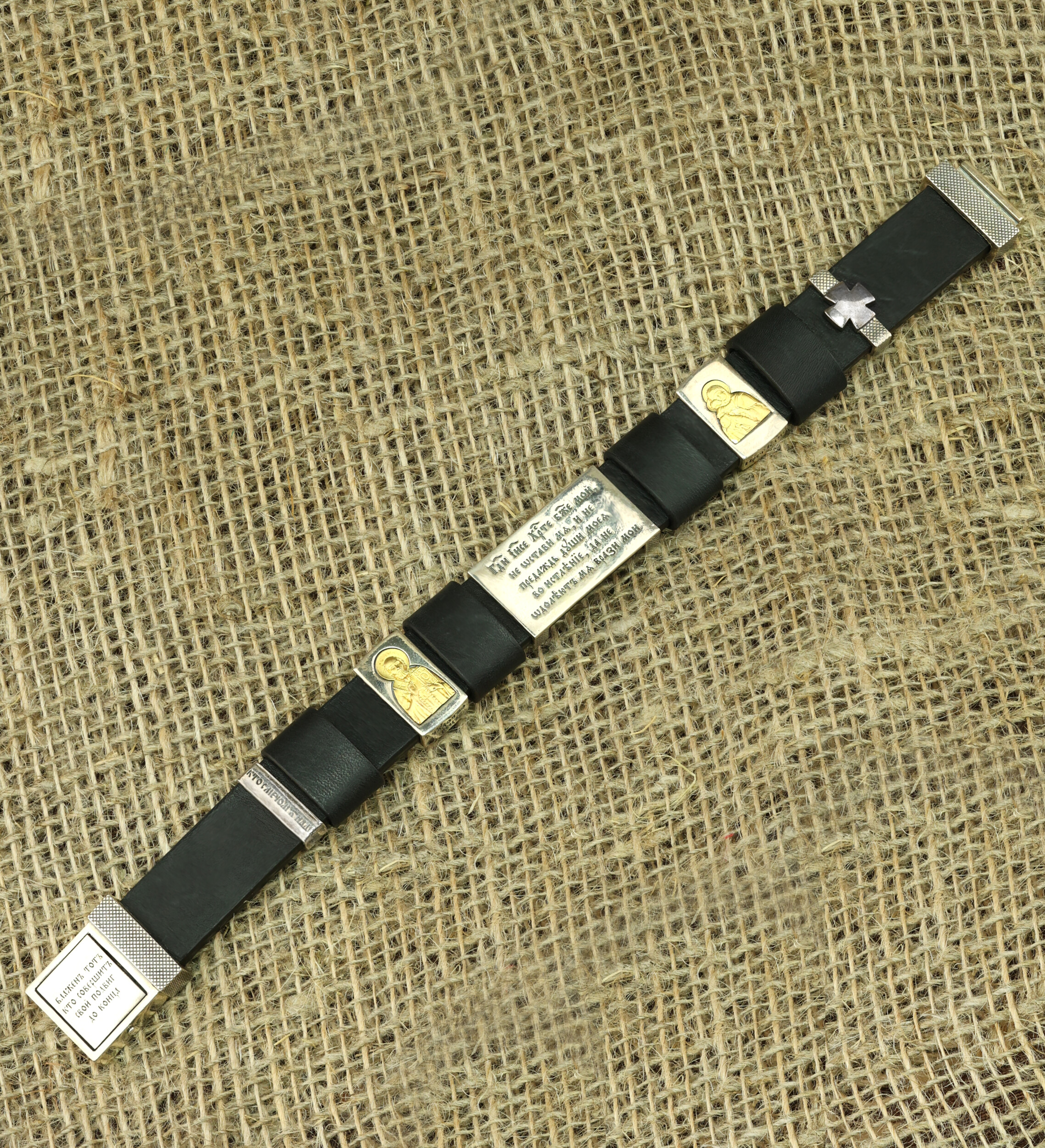 Браслет из серебра и золота c кожаным шнурком