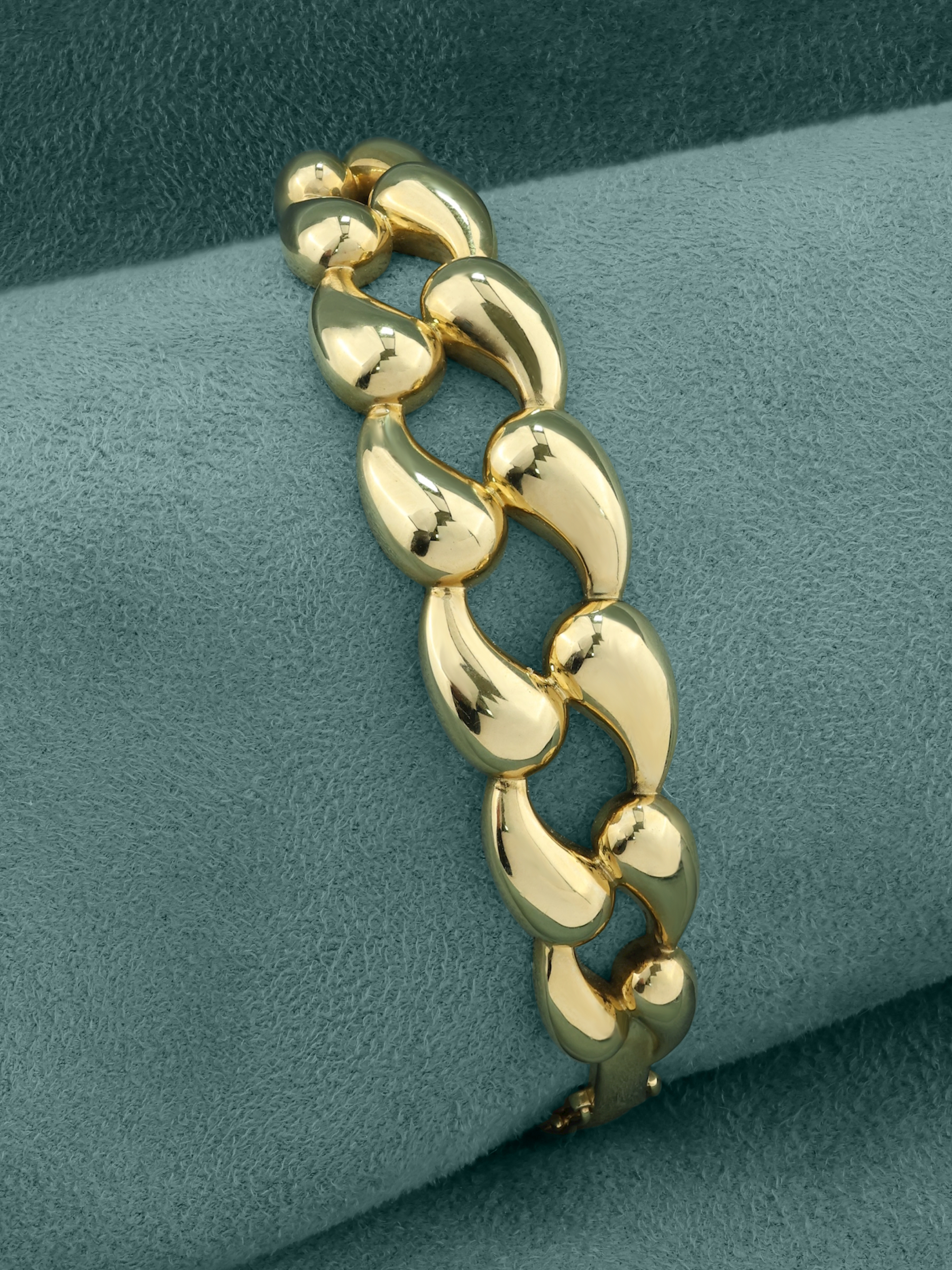 Изысканный браслет из лимонного золота 585 пробы станет центральным акцентом вашего образа, подчеркивая безупречный вкус и статус. Это ювелирное изделие, представленное в рамках коллекции Vioretty — Bottega, выполнено в узнаваемом итальянском стиле, где лаконичность форм встречается с роскошным блеском благородного металла. Дизайн браслета отличается выразительным плетением с объемными звеньями, которые мягко отражают свет, создавая притягательную игру бликов на поверхности лимонного золота.
