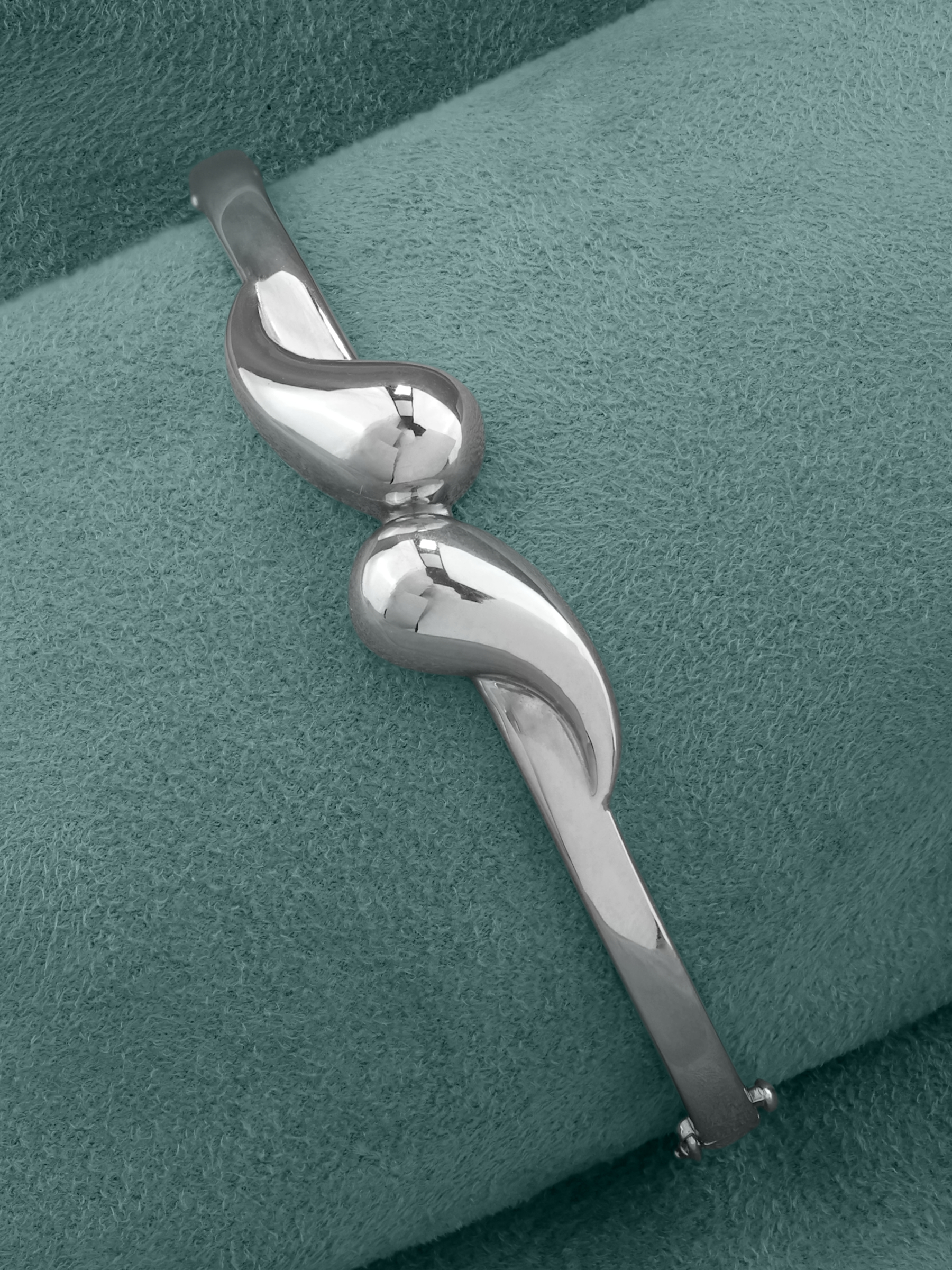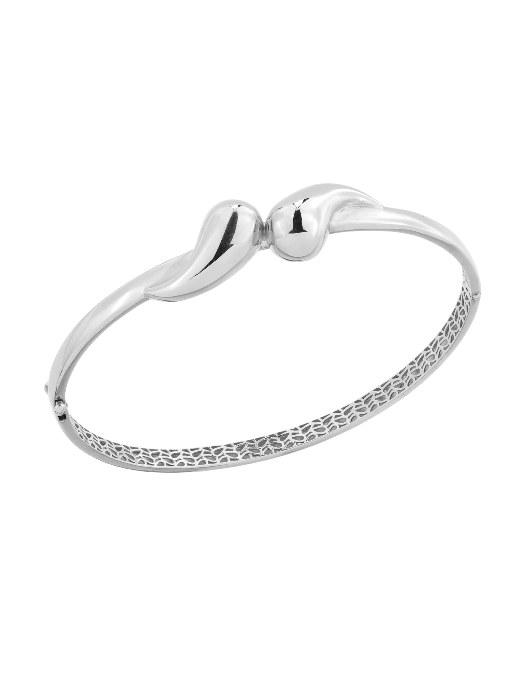 Центральный элемент изделия представляет собой изысканную композицию из двух зеркально отполированных фигур, которые создают гармоничный акцент на запястье. Белый цвет металла делает этот браслет универсальным аксессуаром, который легко вписывается как в женский, так и в мужской гардероб, дополняя как деловой костюм, так и вечерний образ.