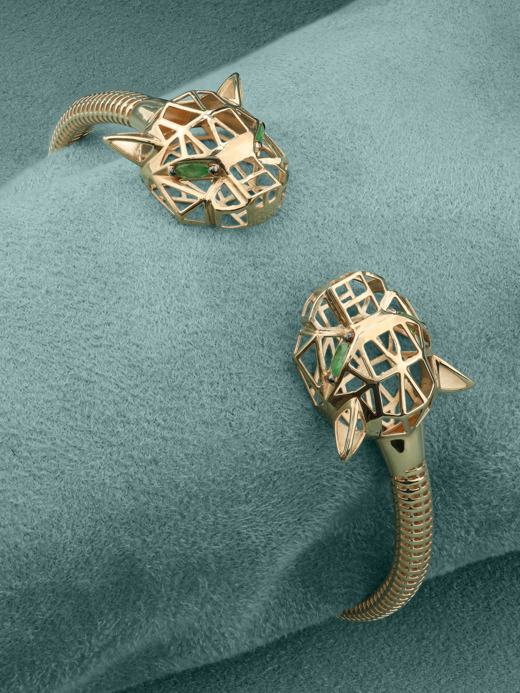 Изделие доступно в размерах 16, 17 и 18, что позволяет подобрать идеальную посадку на запястье. Браслет гармонично сочетается с другими украшениями и может быть частью комплекта. Это ювелирное украшение — выбор тех, кто предпочитает сочетание хищной эстетики, роскоши драгоценных металлов и магии зеленого изумруда. Добавьте в свою коллекцию аксессуар, который притягивает взгляды и демонстрирует ваш безупречный вкус.