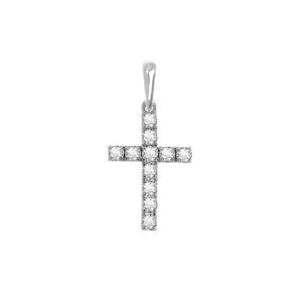 Дизайн модели акцентирует внимание на 11 бриллиантах классической круглой огранки. Белые камни расположены по всей поверхности креста, образуя непрерывную линию мерцающего света. Такая композиция придает изделию выразительность и делает его заметным акцентом в любом ансамбле. Благодаря выверенным пропорциям и качественной закрепке, этот крест с бриллиантами смотрится благородно и солидно.