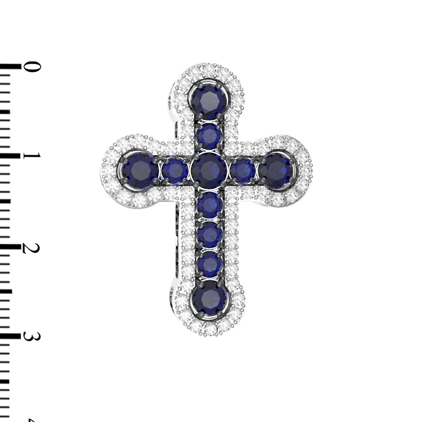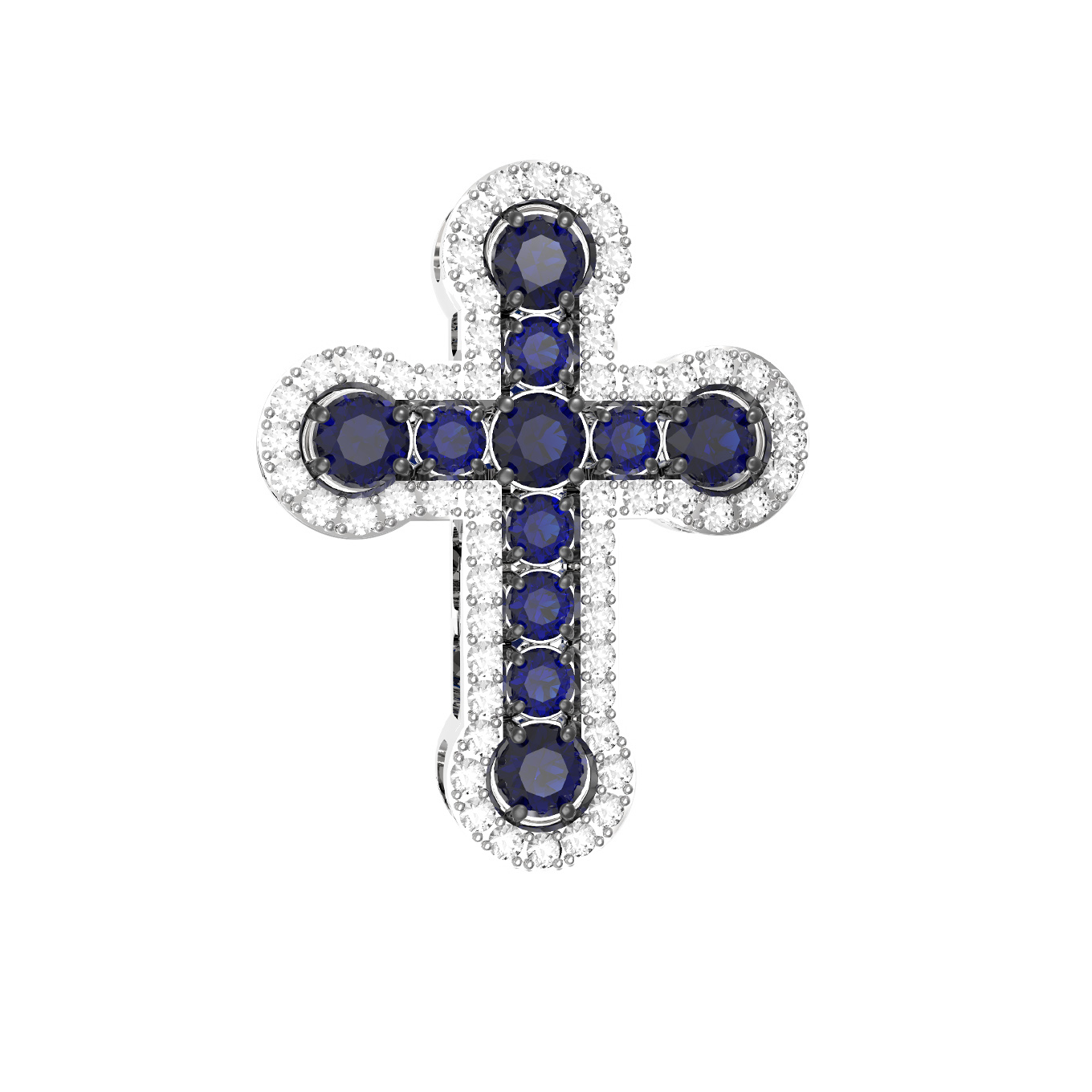 Особую роскошь изделию придает богатая инкрустация: композиция украшена 67 вставками круглой огранки. Глубокий синий цвет сапфиров в центре креста гармонично контрастирует с ослепительным сиянием белых бриллиантов, обрамляющих контур. Сочетание благородных металлов и камней создает эффектный дуэт, который привлекает внимание своей чистотой и глубиной оттенков.