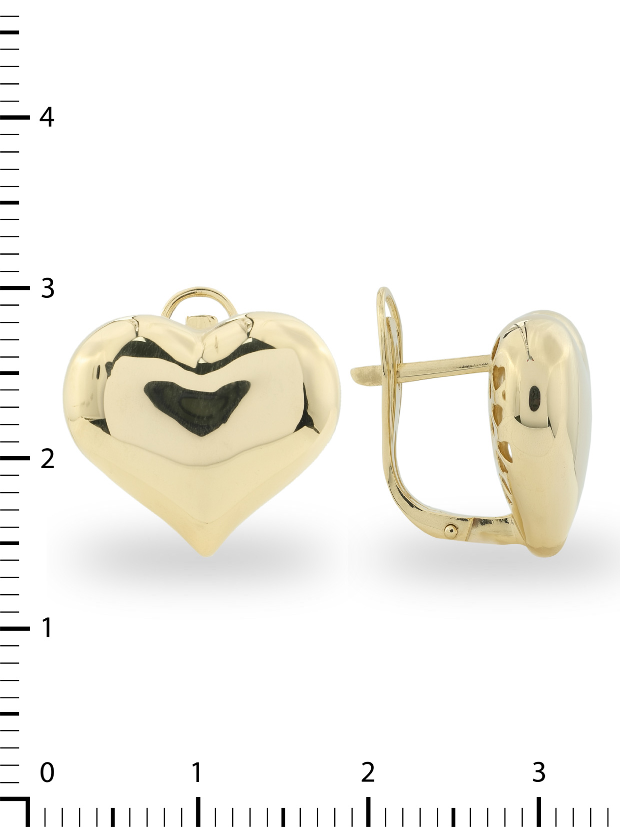 Изделие изготовлено из качественного лимонного золота 585 пробы, что обеспечивает долговечность и безупречный вид украшения на долгие годы. Гладкая, зеркальная поверхность металла мягко отражает свет, создавая притягательный блеск, который невозможно оставить без внимания. Дизайн в форме сердец делает данные серьги универсальным аксессуаром, подходящим как для женщин, так и для мужчин, которые ценят стиль и лаконичность в ювелирных украшениях.
