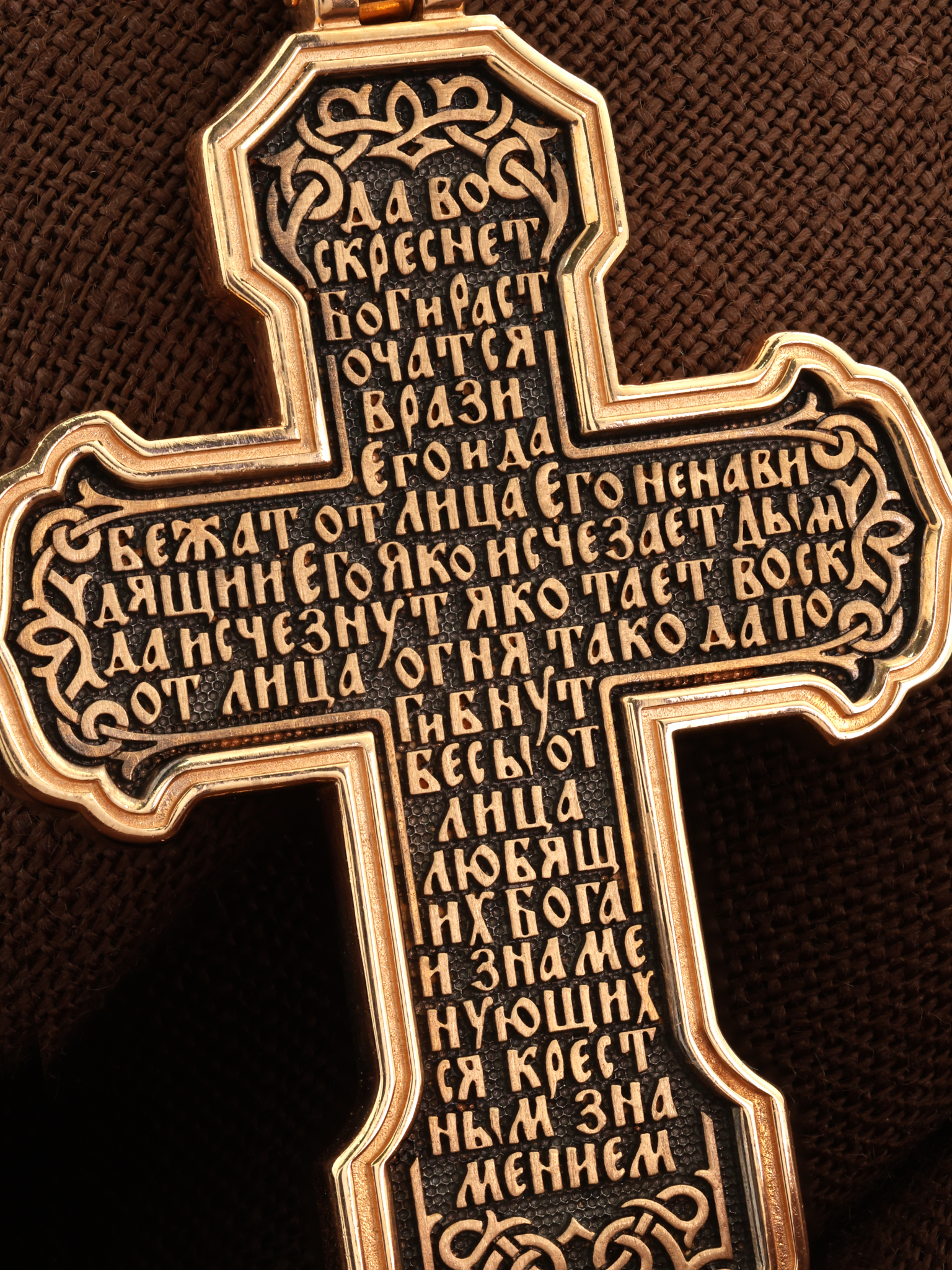 На оборотной стороне креста написана молитва Честному Кресту Господню: «Да воскреснет Бог, и расточатся врази Его, и да бежат от лица Его ненавидящии Его. Яко исчезает дым, да исчезнут; яко тает воск от лица огня, тако да погибнут беси от лица любящих Бога и знаменующихся крестным знамением…».