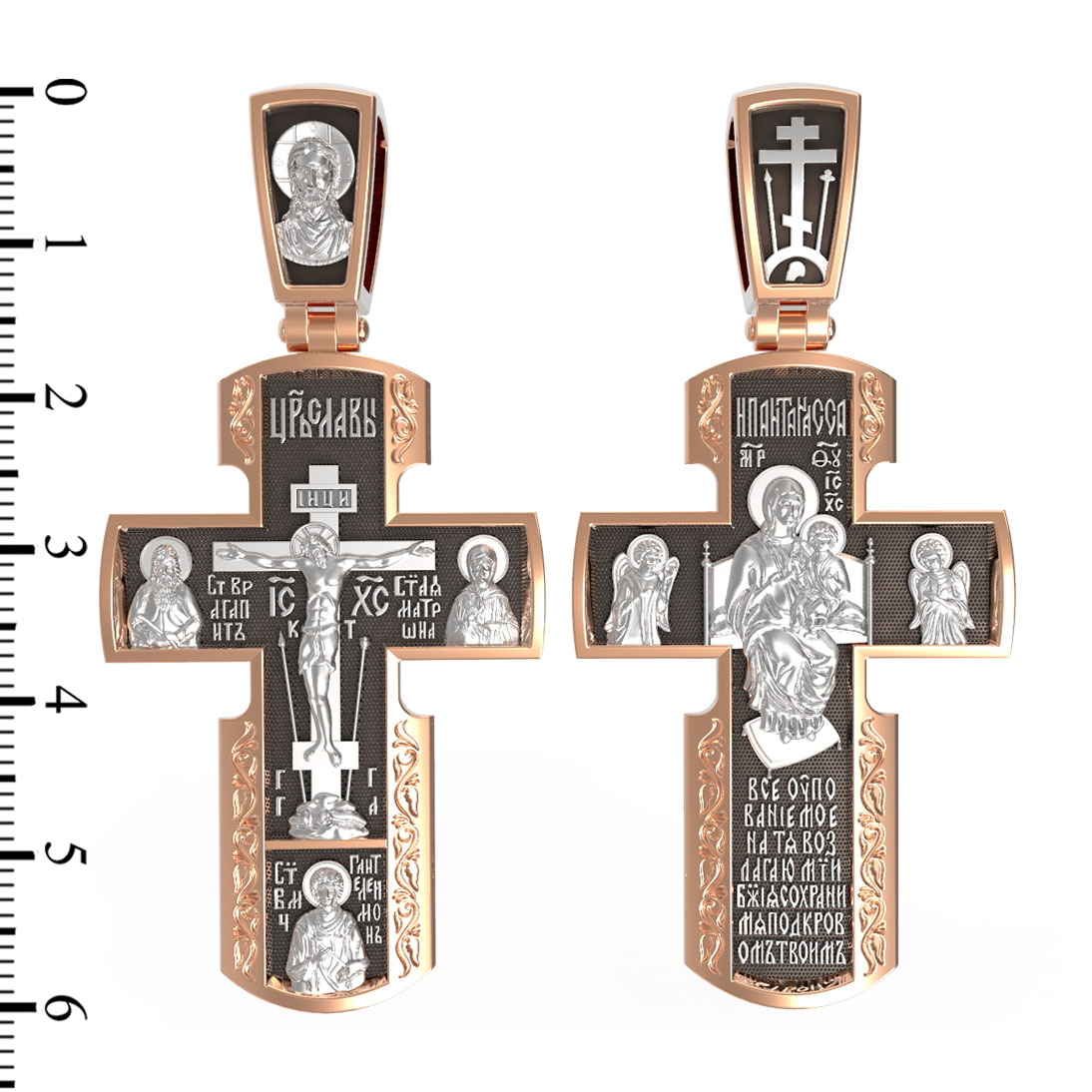Как действенная помощь в немощах и болезнях был создан крест с образами святых целителей и со знаменитой афонской иконой Божией Матери «Всецарица».