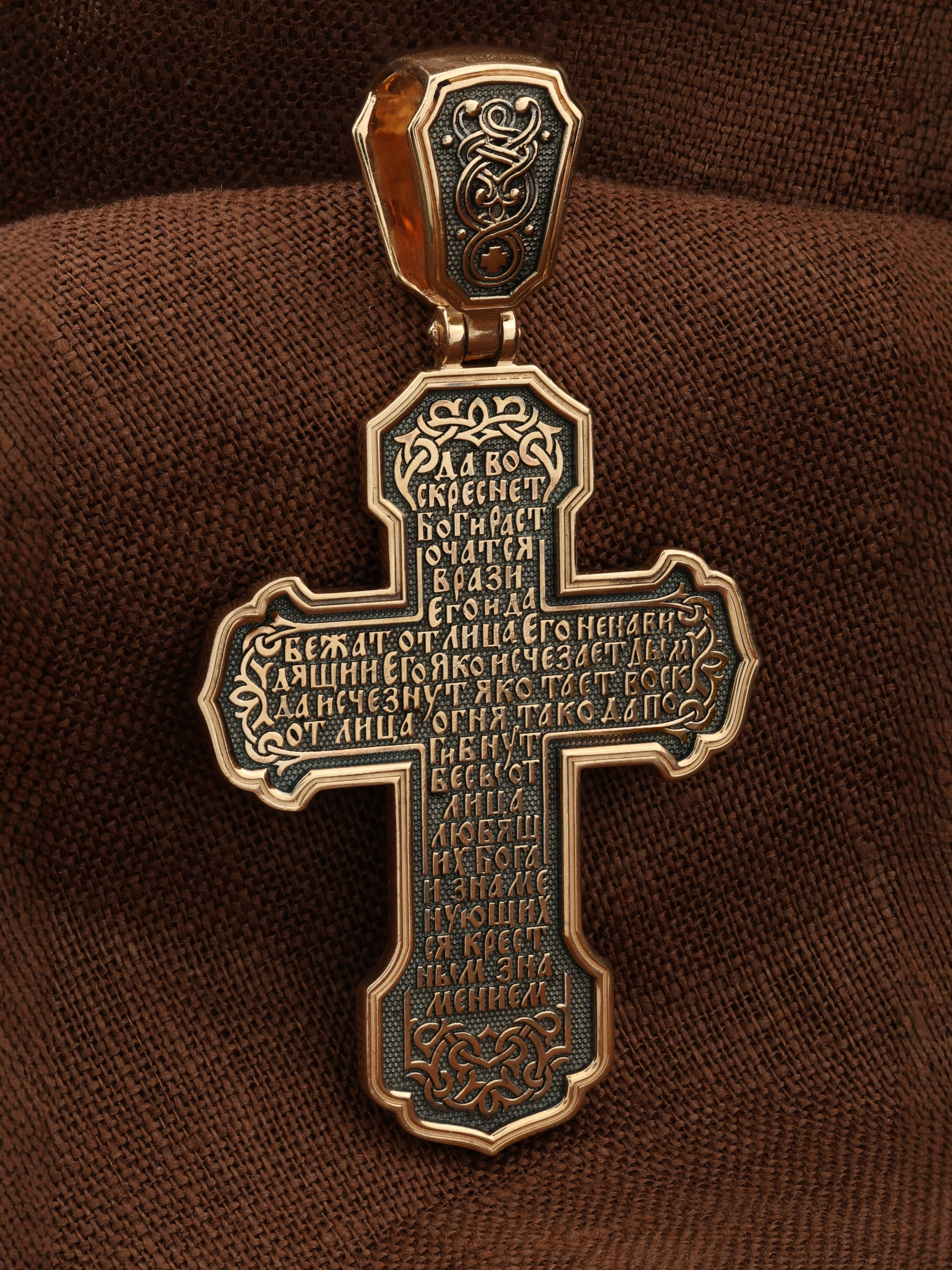 На оборотной стороне креста написана молитва Честному Кресту Господню: «Да воскреснет Бог, и расточатся врази Его, и да бежат от лица Его ненавидящии Его. Яко исчезает дым, да исчезнут; яко тает воск от лица огня, тако да погибнут беси от лица любящих Бога и знаменующихся крестным знамением…».