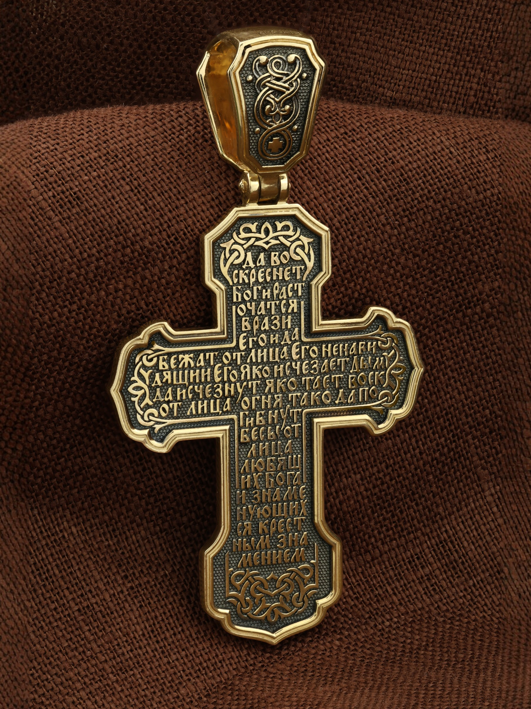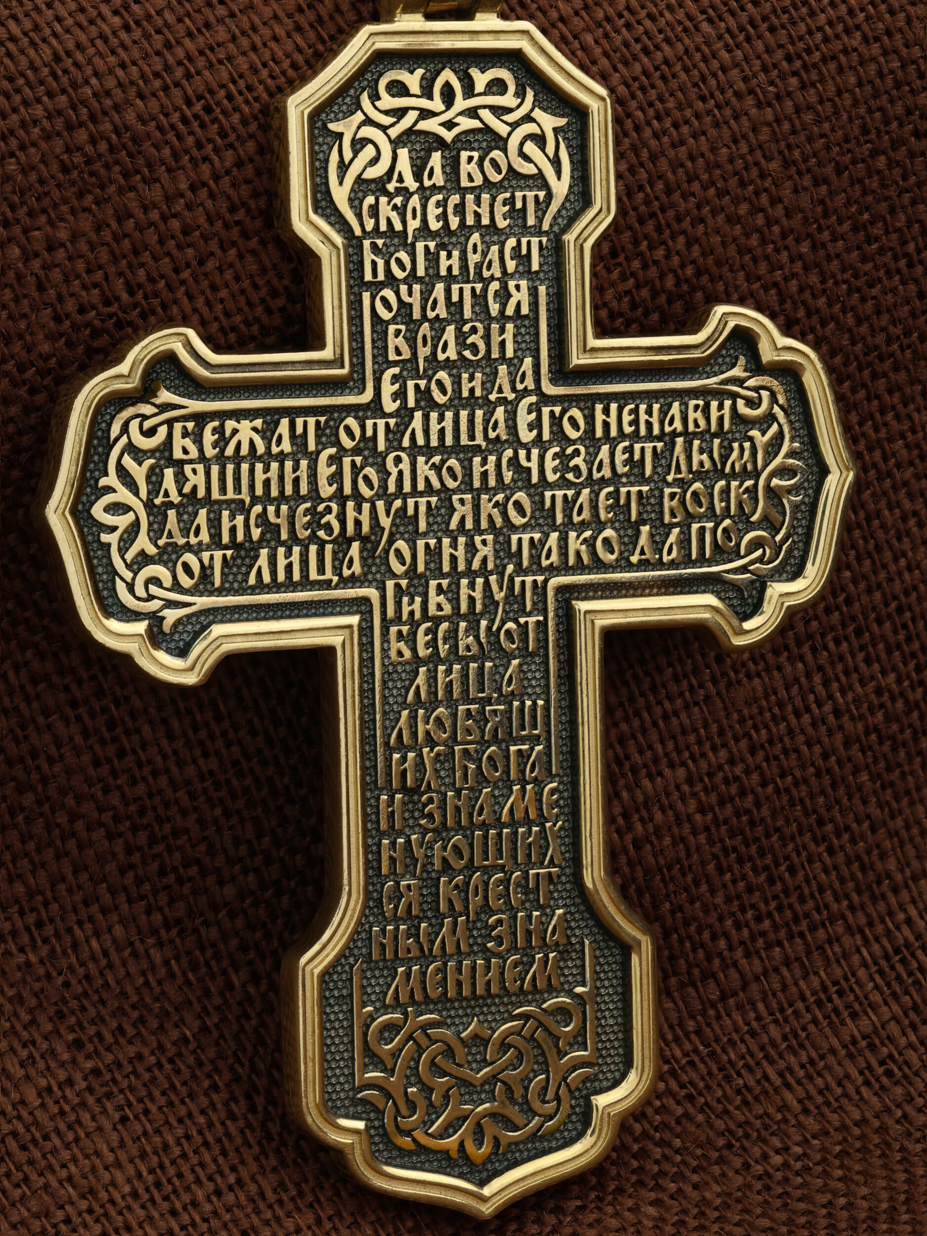 На оборотной стороне креста написана молитва Честному Кресту Господню: «Да воскреснет Бог, и расточатся врази Его, и да бежат от лица Его ненавидящии Его. Яко исчезает дым, да исчезнут; яко тает воск от лица огня, тако да погибнут беси от лица любящих Бога и знаменующихся крестным знамением…».