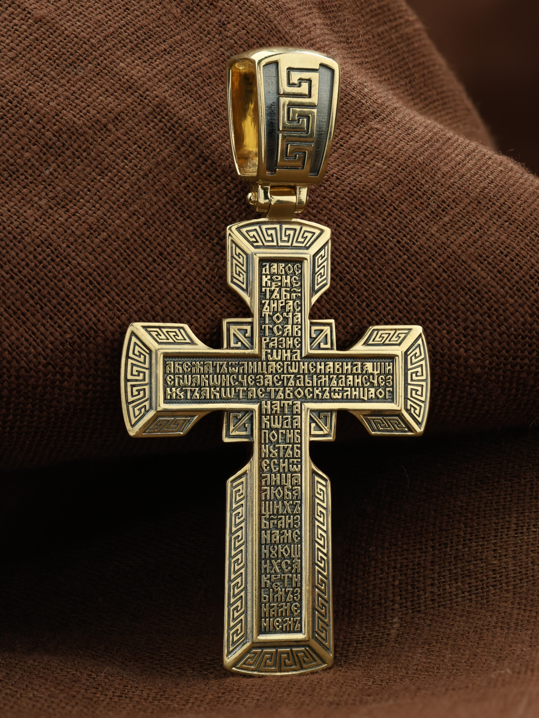 На обороте креста написан начальный стих оградительной молитвы Честному Кресту Господню. Эту молитву читают в опасности, а также носят при себе для защиты от злых сил: «Да воскреснет Бог, и расточатся врази Его, и да бежат от лица Его ненавидящии Его. Яко исчезает дым, да исчезнут; яко тает воск от лица огня, тако да погибнут беси от лица любящих Бога и знаменующихся крестным знамением, и в веселии глаголющих: радуйся, Пречестный и Животворящий Кресте Господень, прогоняй бесы силою на тебе пропятаго Господа нашего Иисуса Христа, во ад сшедшаго и поправшаго силу диаволю, и даровавшаго нам тебе Крест Свой Честный на прогнание всякаго супостата. О, Пречестный и Животворящий Кресте Господень! Помогай ми со Святою Госпожею Девою Богородицею и со всеми святыми во веки. Аминь».