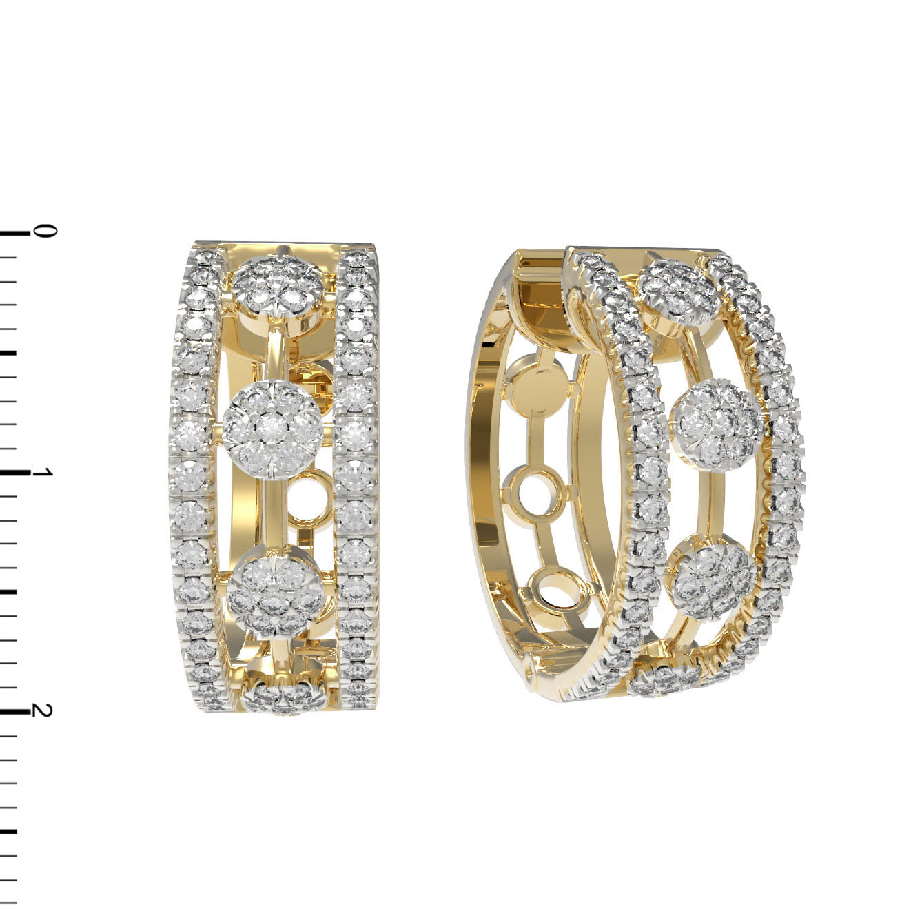 Серьги декорированы 124 бриллиантами круглой формы, создающими невероятную игру света. Белый цвет вставок эффектно контрастирует с теплым металлом, формируя гармоничную композицию. Мастерство исполнения подчеркивается многоуровневой структурой, где акцентные элементы с бриллиантовыми россыпями соседствуют с изящными золотыми деталями. Это украшение универсально — оно создано как для женщин, так и для мужчин, предпочитающих статусные и выразительные аксессуары.