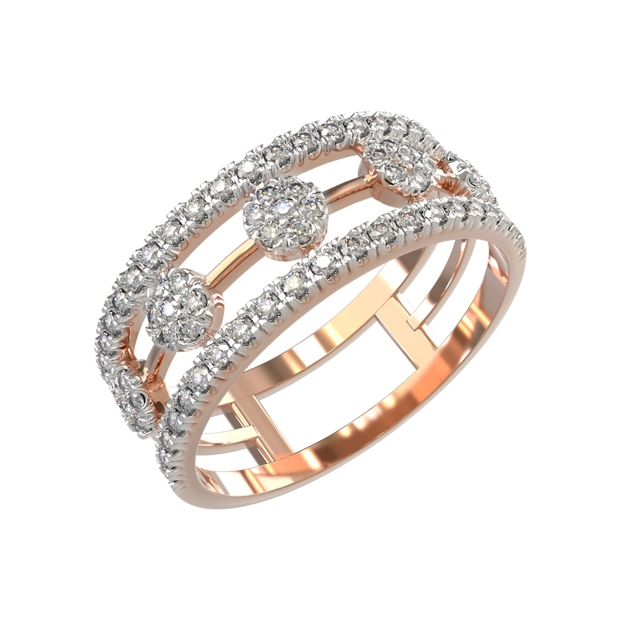 Центральным элементом декора выступают 77 бриллиантов круглой огранки. Белый цвет вставок создает выразительный контраст с теплотой красного золота, усиливая игру света при каждом движении. Универсальный дизайн позволяет использовать это кольцо как для женщин, так и для мужчин, что делает его отличным выбором для создания парных комплектов. Изделие представлено в широкой размерной сетке от 16 до 23, что гарантирует идеальную посадку на пальце.