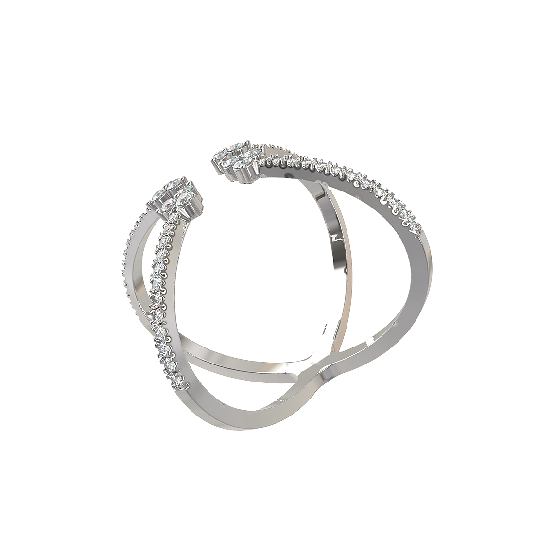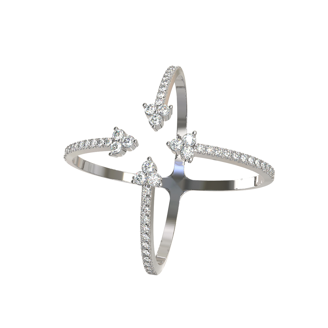 Кольцо из белого золота с бриллиантами — это воплощение современного ювелирного искусства, сочетающее в себе смелый дизайн и классическую роскошь. Это изысканное украшение из коллекции De Luxe Бриллианты — Royal станет идеальным дополнением образа для женщин и мужчин, которые ценят оригинальные формы и безупречное качество исполнения. Уникальная конструкция изделия напоминает изящный крестообразный силуэт, который деликатно подчеркивает утонченность линий пальцев.