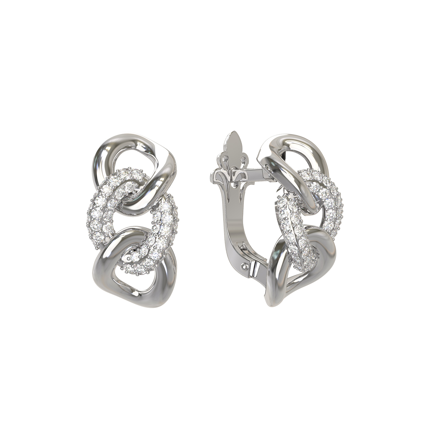 Серьги из белого золота 585 пробы из коллекции De Luxe Бриллианты — Royal представляют собой гармоничное сочетание современного дизайна и классической роскоши. Это изысканное ювелирное украшение создано для тех, кто ценит эстетику и безупречный стиль. Плавные, переплетающиеся формы изделия, выполненные в благородном белом цвете, подчеркивают статус и утонченный вкус владельца.