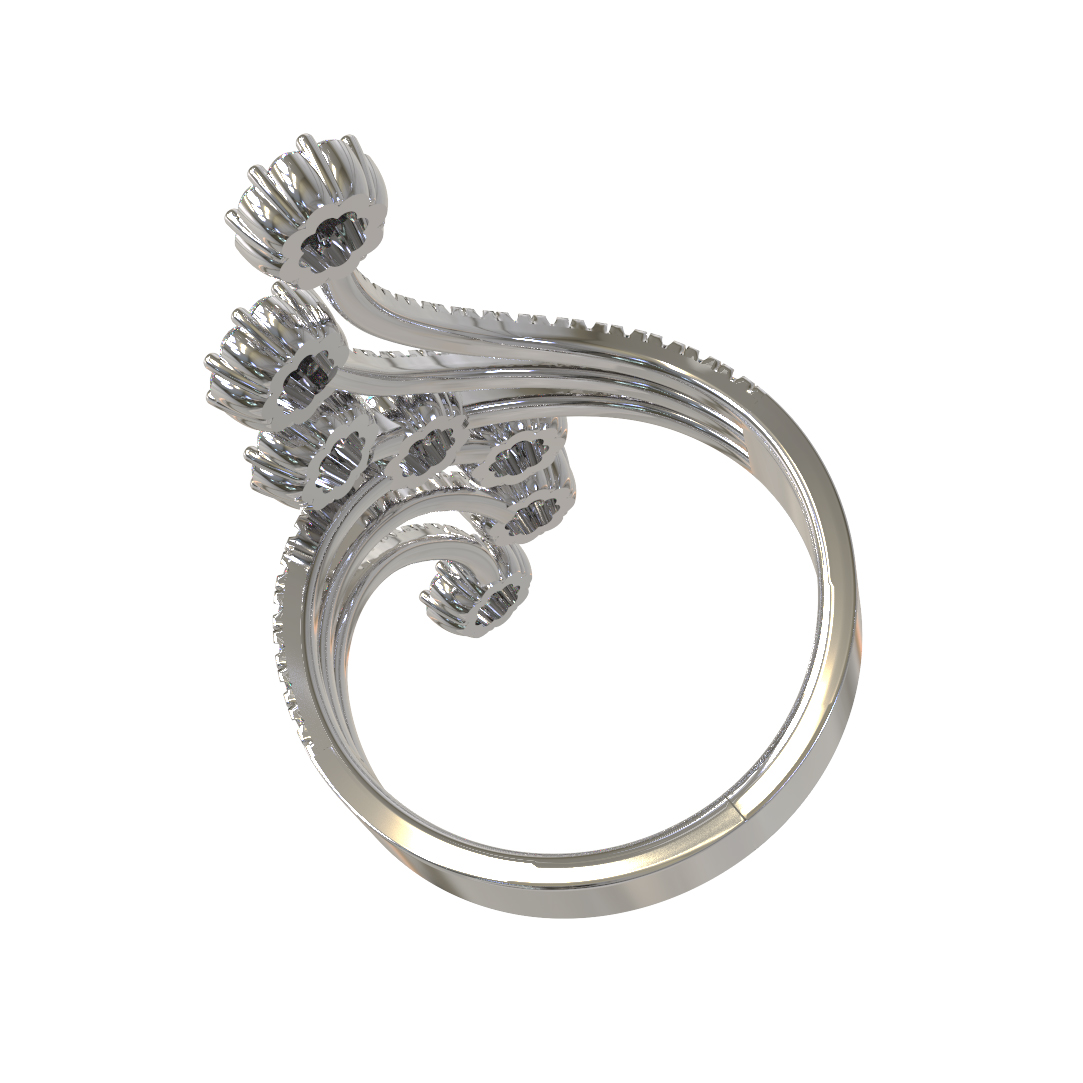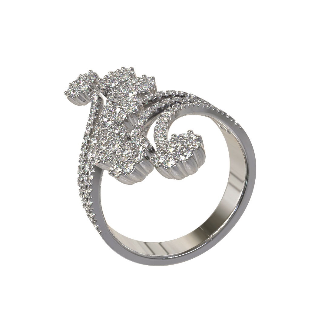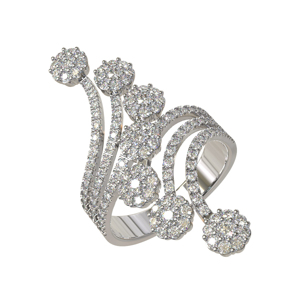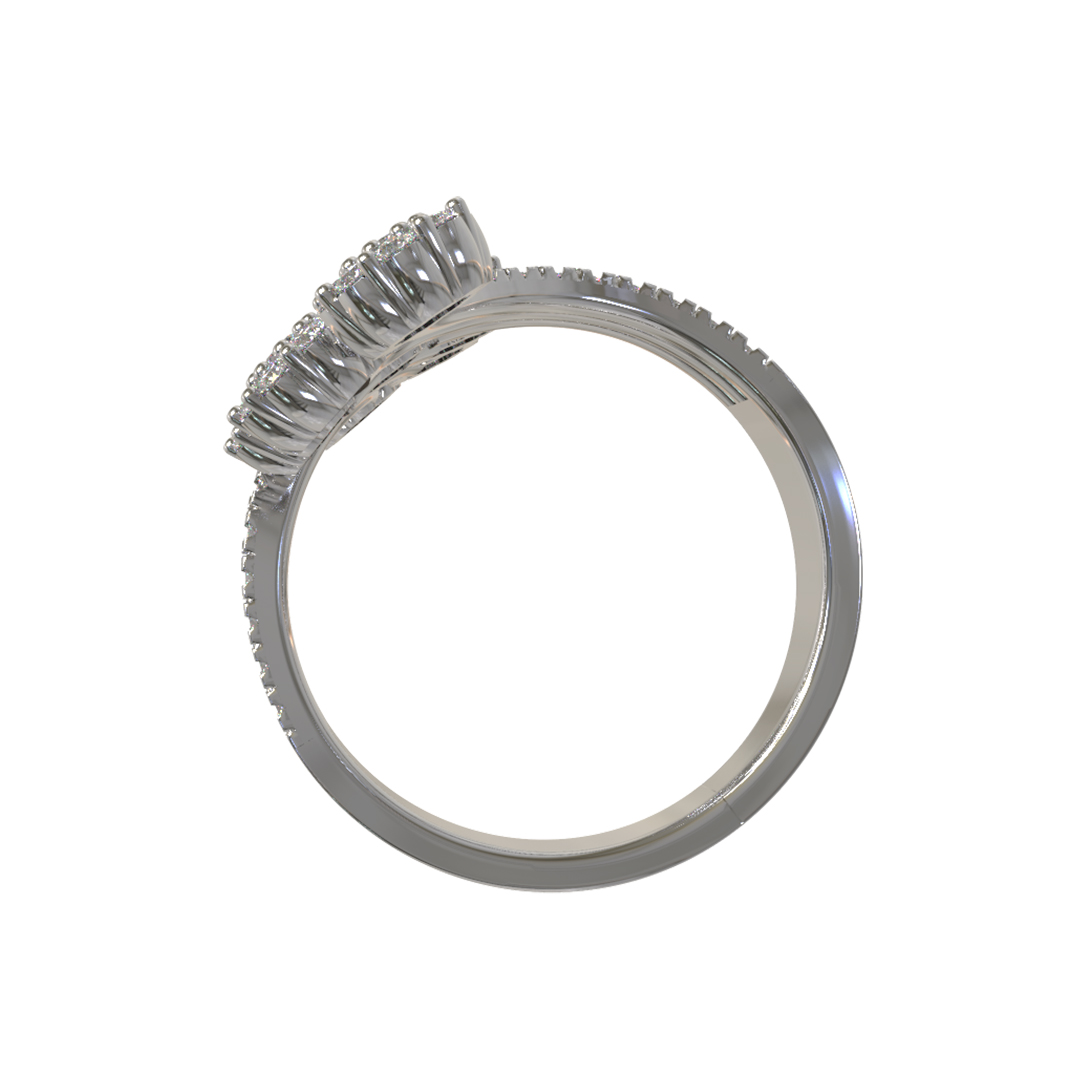 В оформлении использованы 129 бриллиантов, которые отличаются чистотой и ярким блеском. Белые вставки круглой формы гармонично сочетаются с холодным благородным сиянием металла, подчеркивая статусность украшения. Это кольцо создано для ценителей эксклюзивного дизайна и станет великолепным дополнением коллекции как для женщин, так и для мужчин.