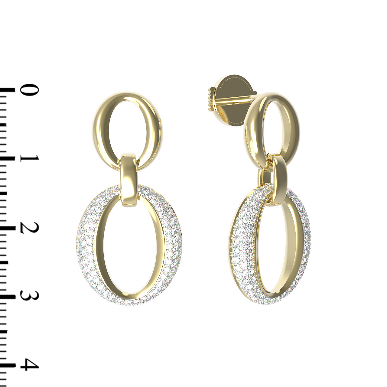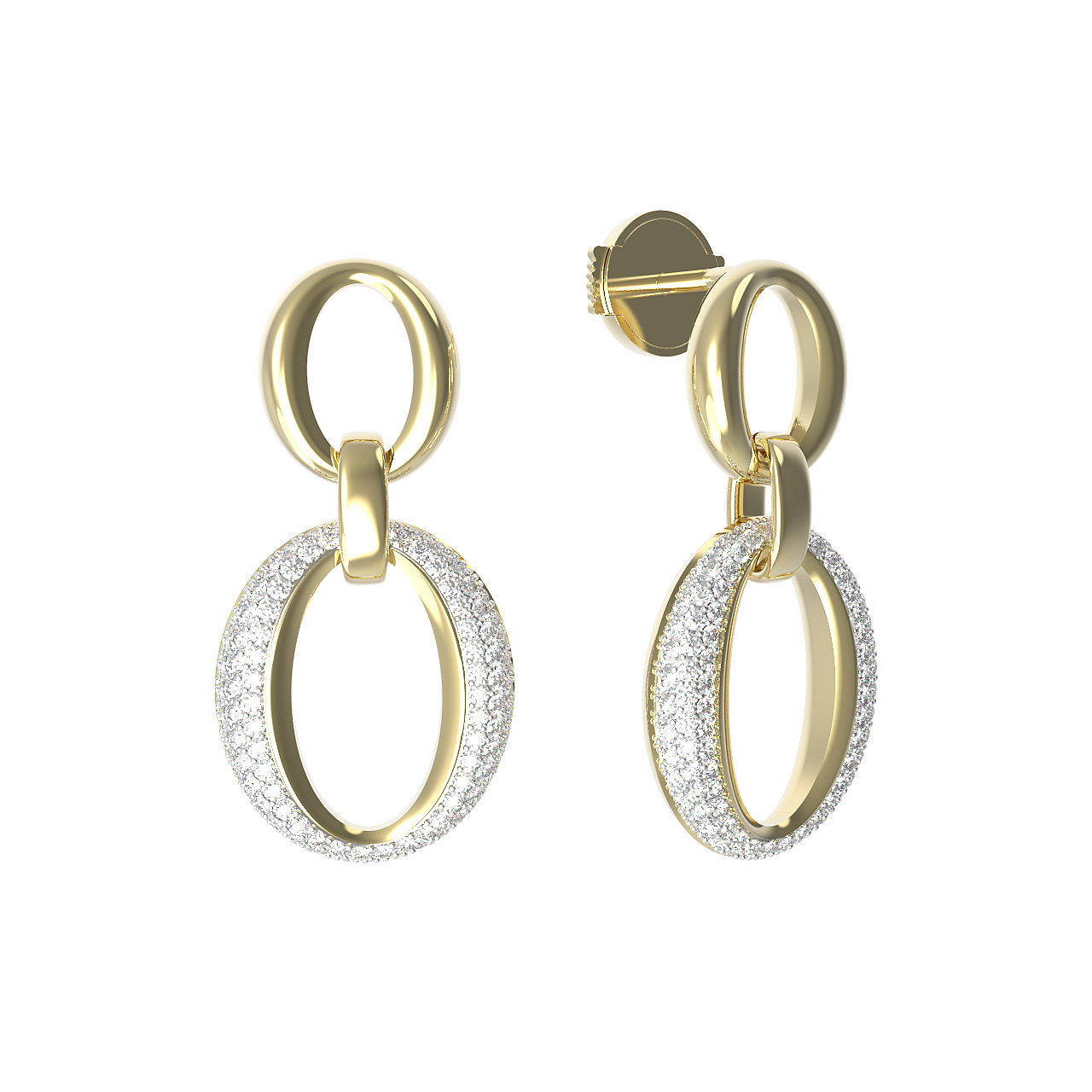 Особое сияние изделию придает россыпь драгоценных камней. Нижний элемент украшен 176 бриллиантами круглой формы с классическим белым цветом, которые создают завораживающую игру света при каждом вашем движении. Лимонное золото подчеркивает чистоту и холодный блеск вставок, делая дизайн гармоничным и завершенным.