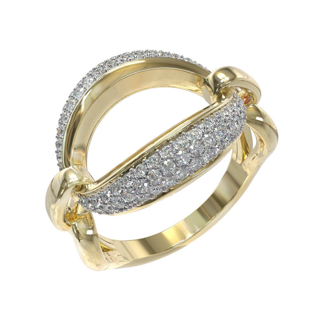 Роскошное кольцо из лимонного золота 585 пробы станет центральным акцентом любого образа. Дизайн украшения, вдохновленный эстетикой коллекции De Luxe Бриллианты — Royal, отличается сложной и динамичной геометрией. Изысканная шинка, выполненная из благородного металла лимонного оттенка, дополнена активным декоративным элементом, который создает выразительный объем и придает изделию современный вид. Особую ценность кольцу придает инкрустация: 86 бриллиантов круглой формы с классическим белым цветом вставок создают ослепительное сияние при каждом движении руки.