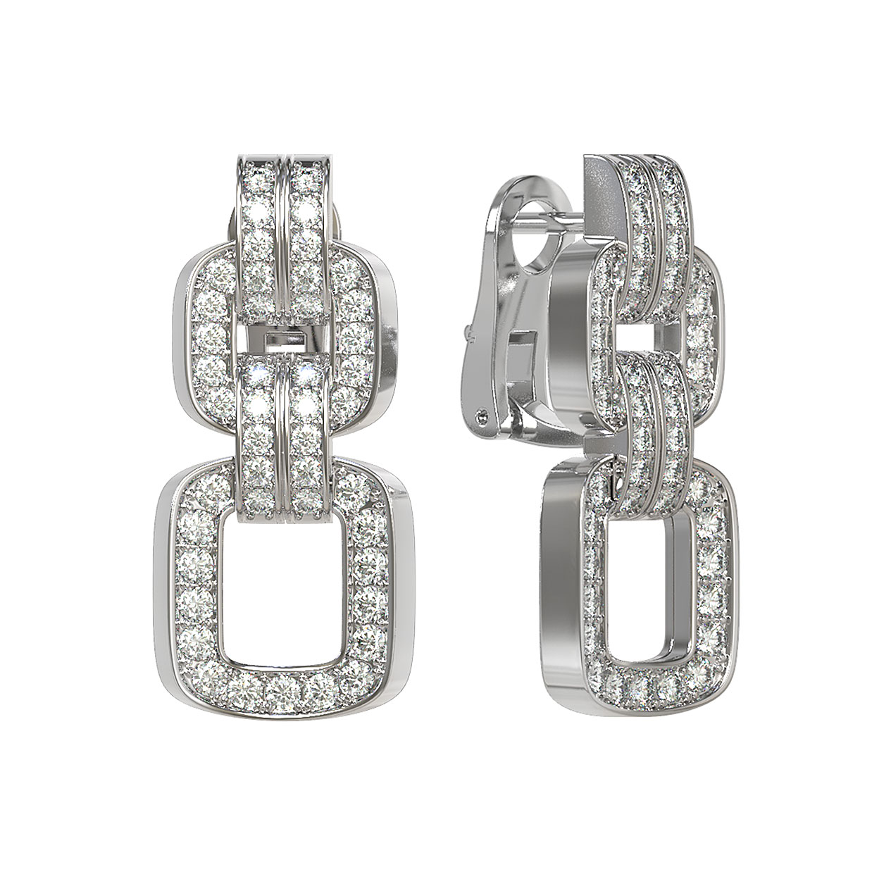 Роскошные серьги из белого золота 585 пробы станут безупречным дополнением вашего ювелирного гардероба. Дизайн, представленный в коллекции De Luxe Бриллианты — Royal, отличается строгостью линий и выразительностью форм. Геометрический силуэт звеньев придает украшению современный и статусный вид, подчеркивая безупречный вкус владельца. Эти серьги — это выбор тех, кто ценит лаконичность и высокое качество исполнения.