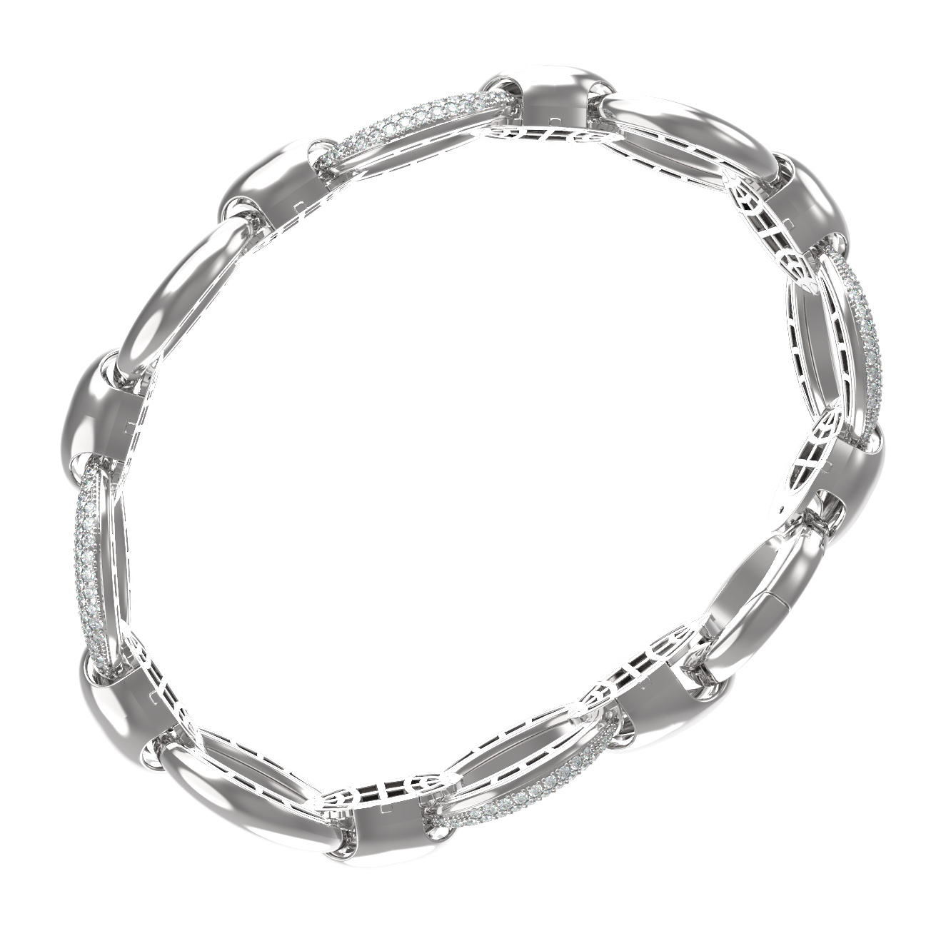 Этот браслет — универсальное ювелирное решение, которое одинаково эффектно смотрится как на женщинах, так и на мужчинах. Мастерство исполнения подчеркивает сложность дизайна: чередование акцентных элементов с камнями и лаконичных звеньев создает динамичный и современный стиль. Ювелирное изделие обладает высокой прочностью, что позволяет носить его ежедневно, сохраняя первозданный вид.