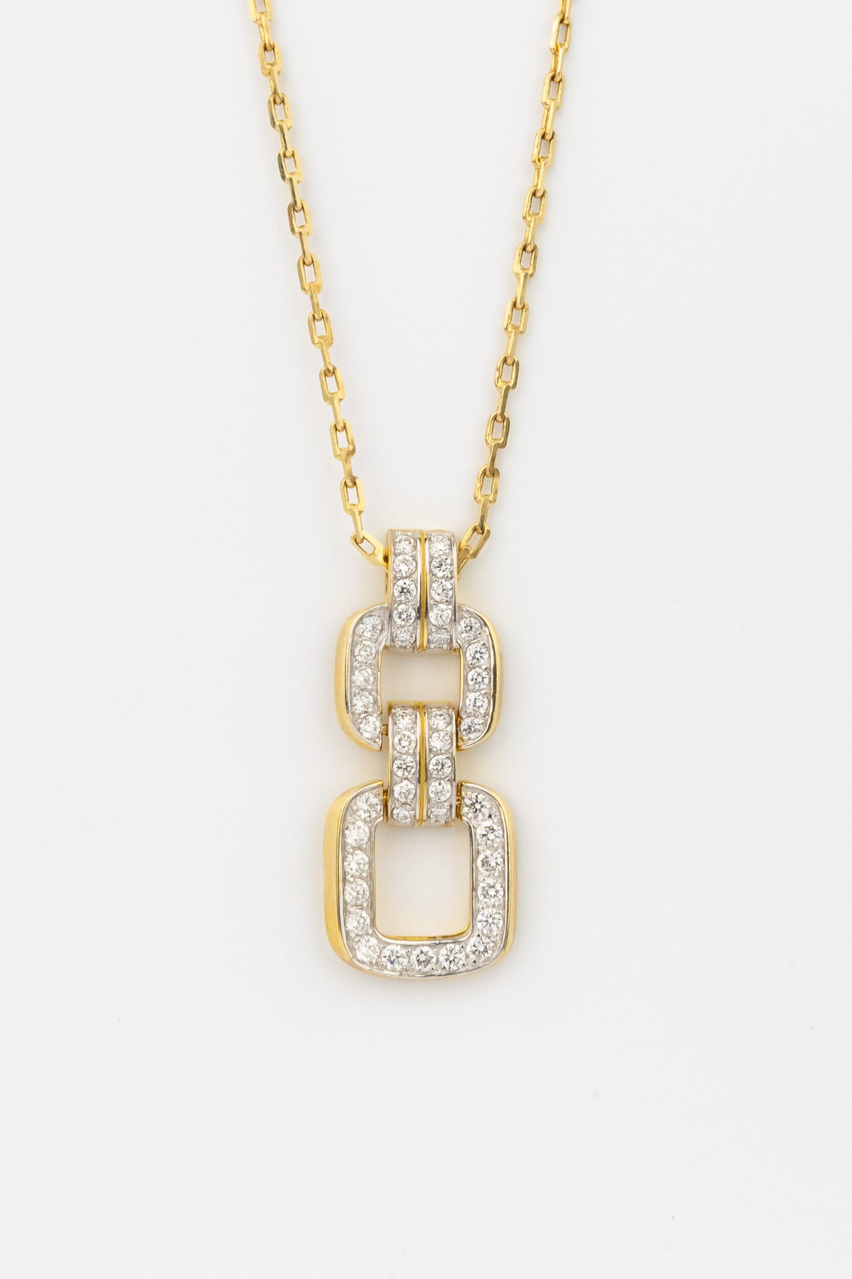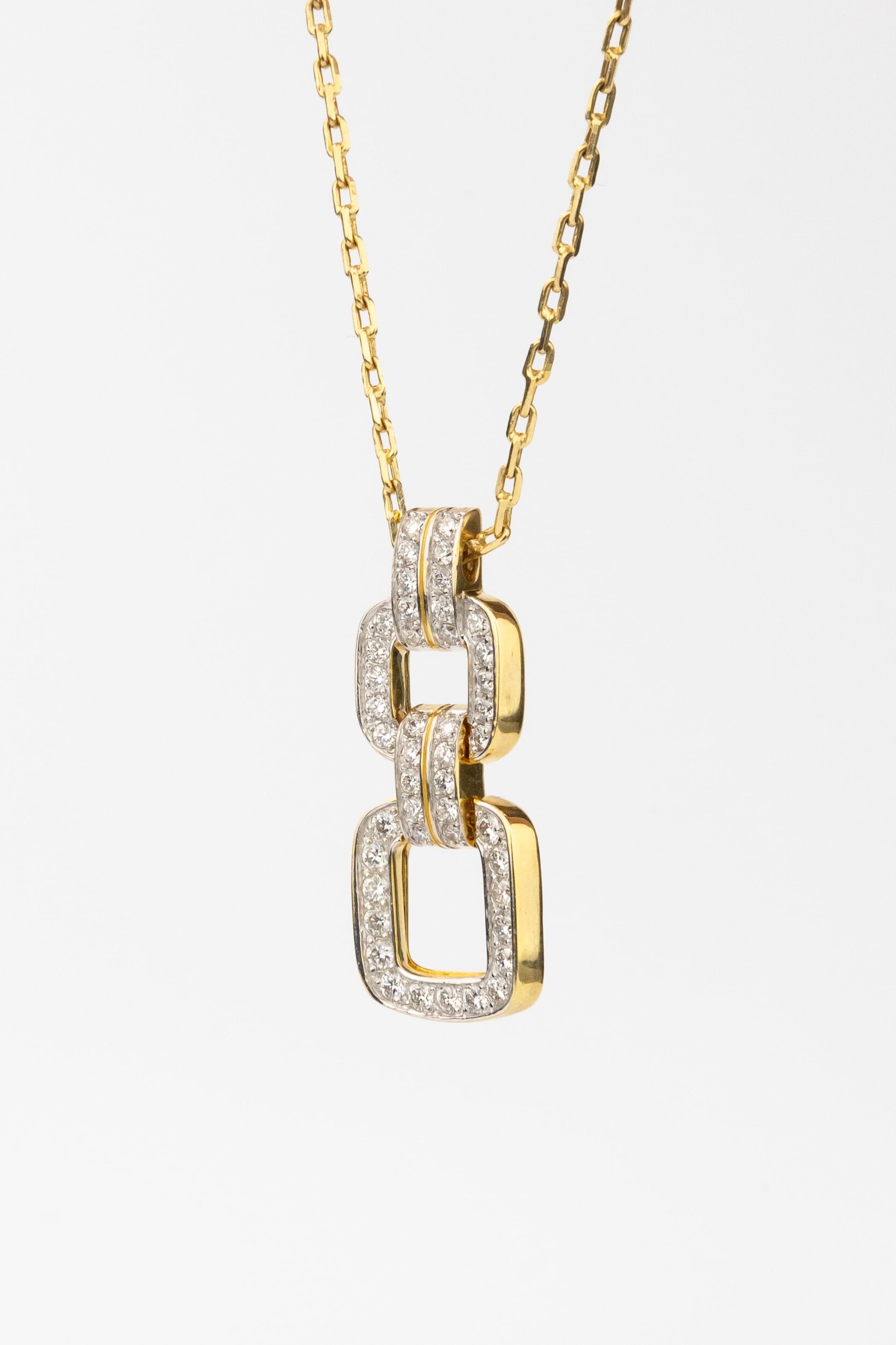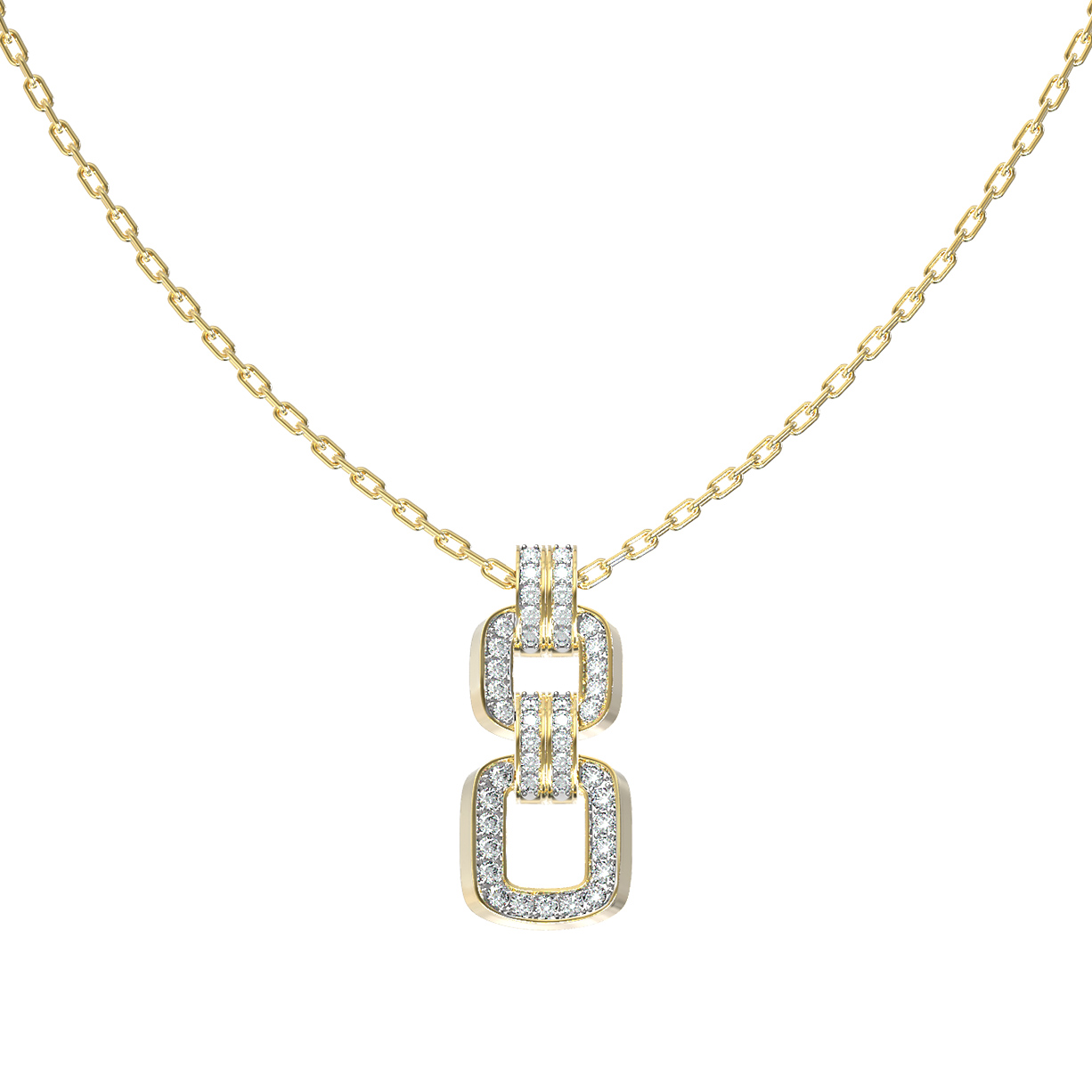 Роскошное колье из лимонного золота 585 пробы станет ярким акцентом в вашем образе, подчеркивая безупречный вкус и статус. Это украшение из коллекции De Luxe Бриллианты — Royal привлекает внимание своим современным дизайном, сочетающим классическую элегантность и актуальные тренды ювелирного искусства. Геометричная подвеска в виде звеньев цепочки создает динамичный и выразительный стиль, который подходит как для женщин, так и для мужчин, предпочитающих премиальные аксессуары.