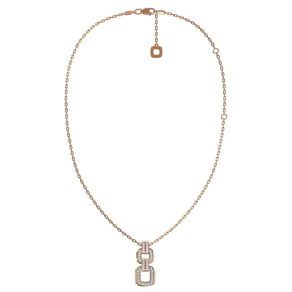 Роскошь и сияние украшению придает инкрустация из 45 бриллиантов круглой огранки. Белый цвет вставок эффектно контрастирует с теплым оттенком красного золота, создавая гармоничное сочетание света и цвета. Благодаря универсальному стилю, это колье подойдет как для женщин, так и для мужчин, добавляя ноту завершенности любому наряду — от повседневного до вечернего.