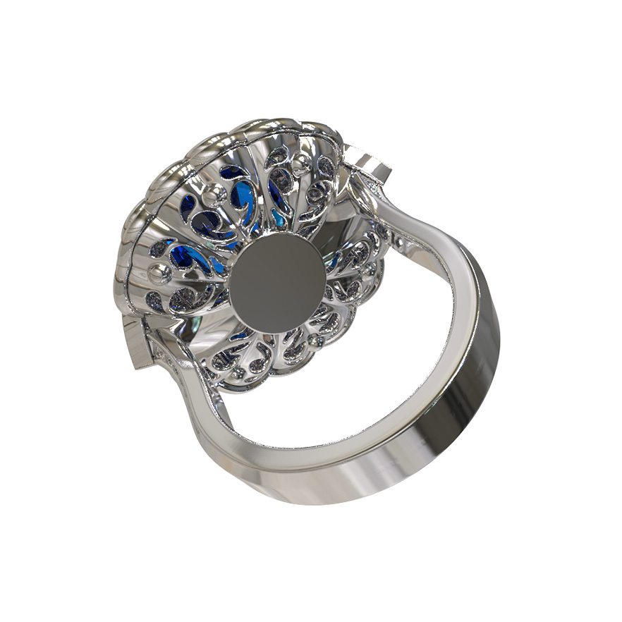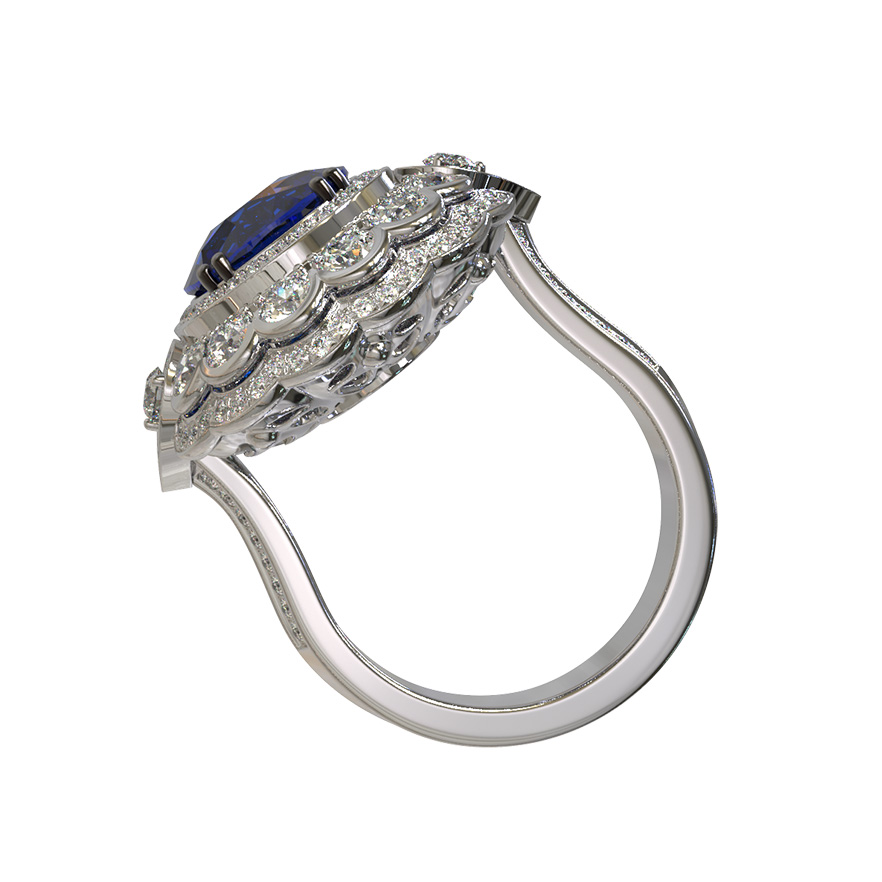 Кольцо из белого золота c бриллиантами и сапфиром