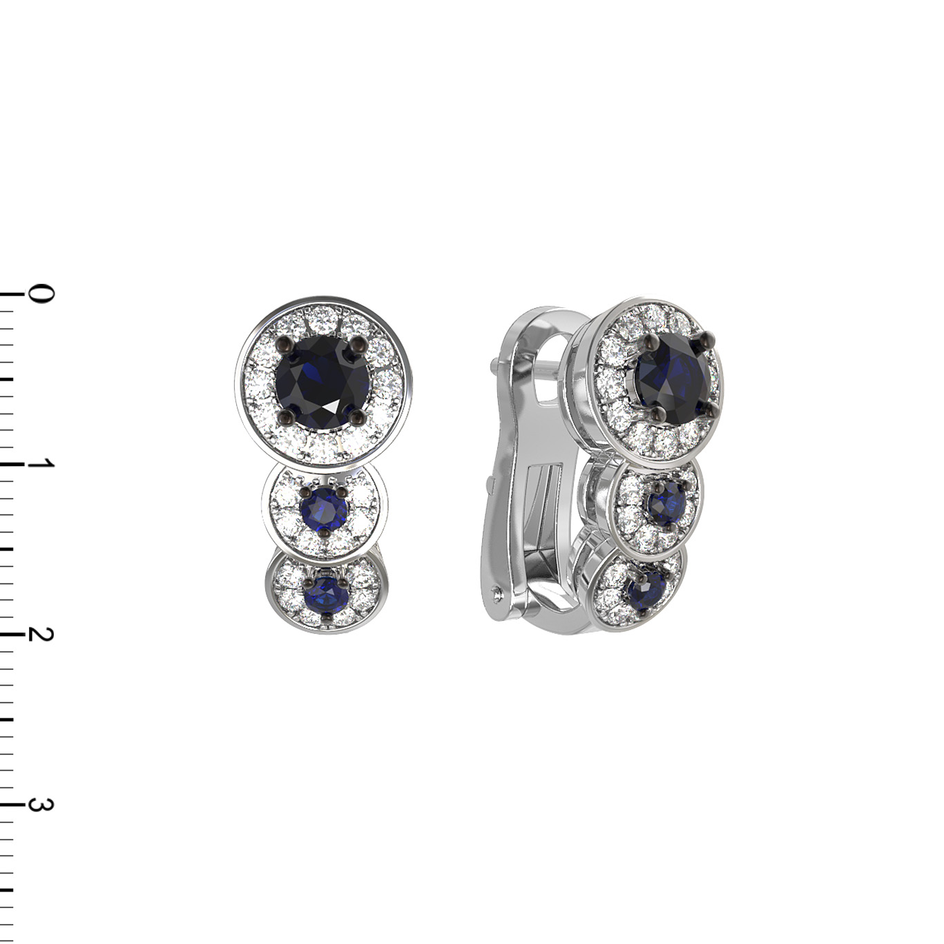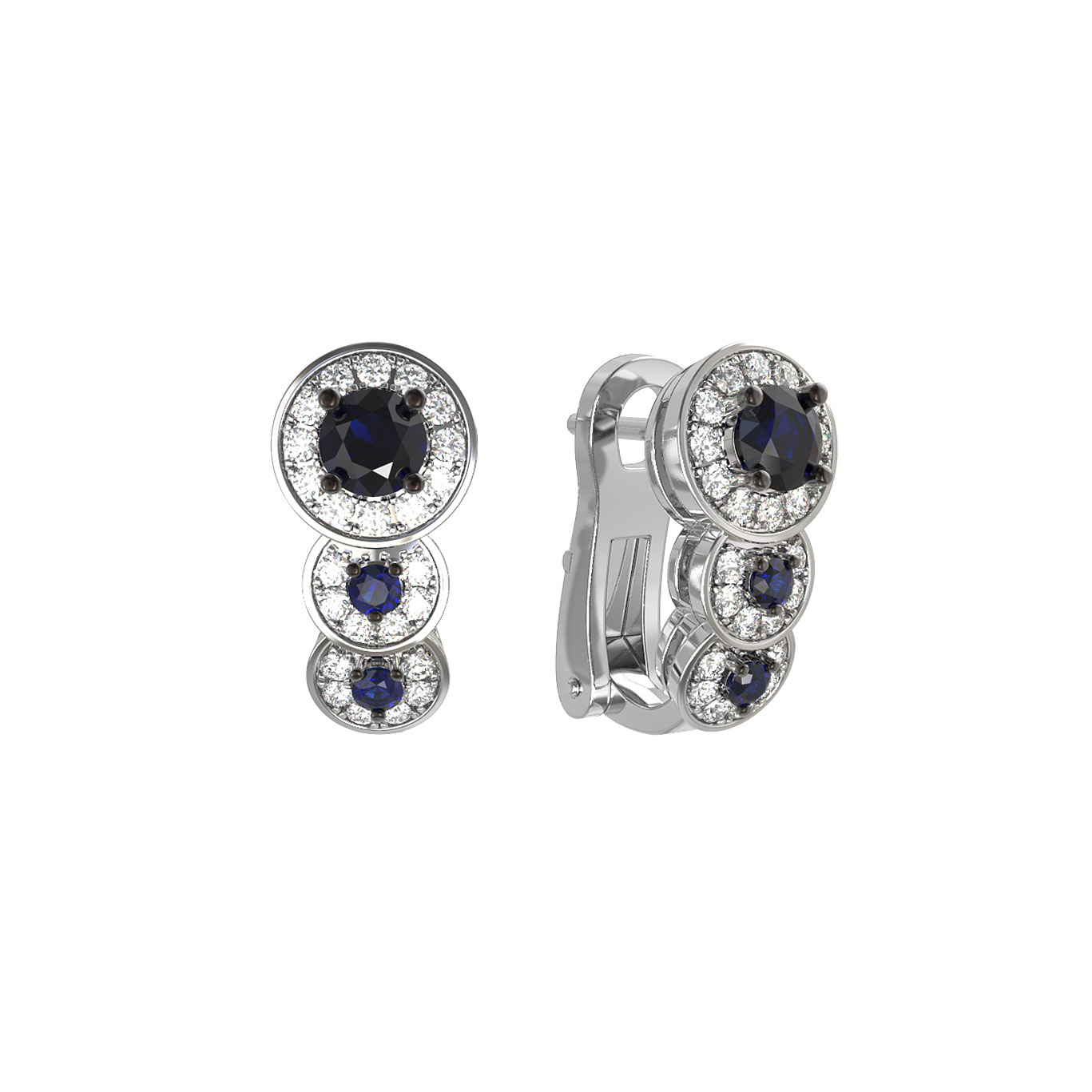 Центральным элементом композиции стали глубокие синие сапфиры круглой формы, которые гармонично сочетаются с искристыми белыми бриллиантами. Всего в изделии использовано 54 вставки, образующие чарующий ансамбль, играющий на свету при каждом движении. Благодаря своей лаконичной и в то же время роскошной эстетике, эти серьги станут важным акцентом в любом образе.