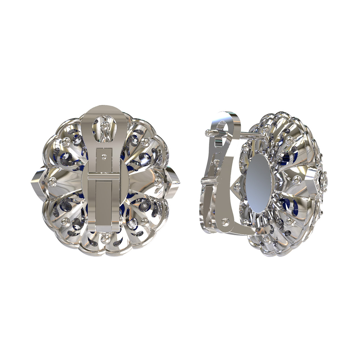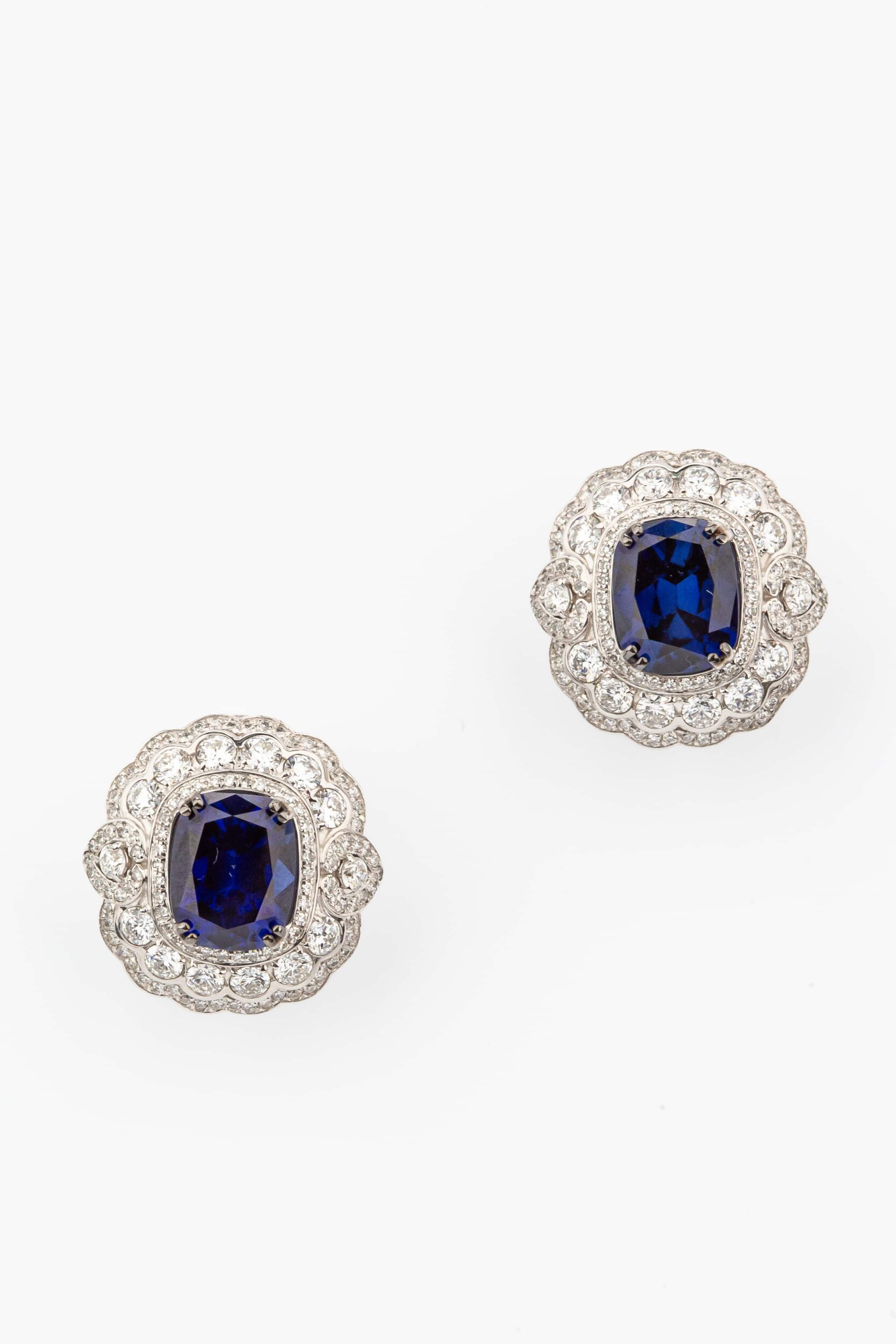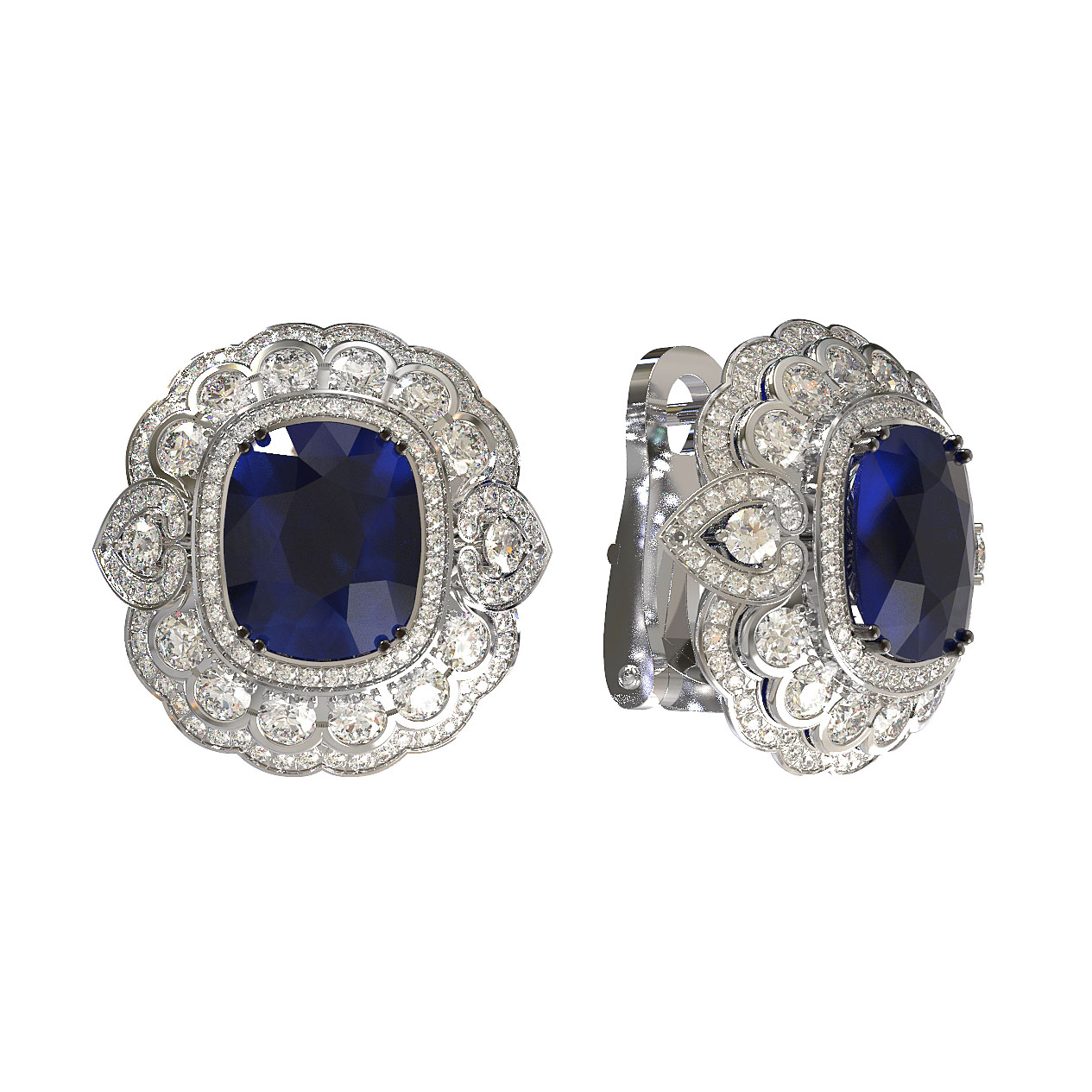 Белое золото с холодным блеском идеально подчеркивает контраст между прозрачностью бриллиантов и бархатистой глубиной сапфиров. Эти серьги подойдут как для женщин, так и для мужчин, предпочитающих премиальные аксессуары. Сложная многоуровневая форма изделия делает его центральным элементом любого образа, будь то торжественное событие или светский выход. Благодаря выверенной композиции, данная модель органично вписывается в комплекты, позволяя создавать завершенные ювелирные ансамбли. Эти серьги — инвестиция в ваш гардероб, сочетающая в себе классические традиции и высокое качество исполнения.