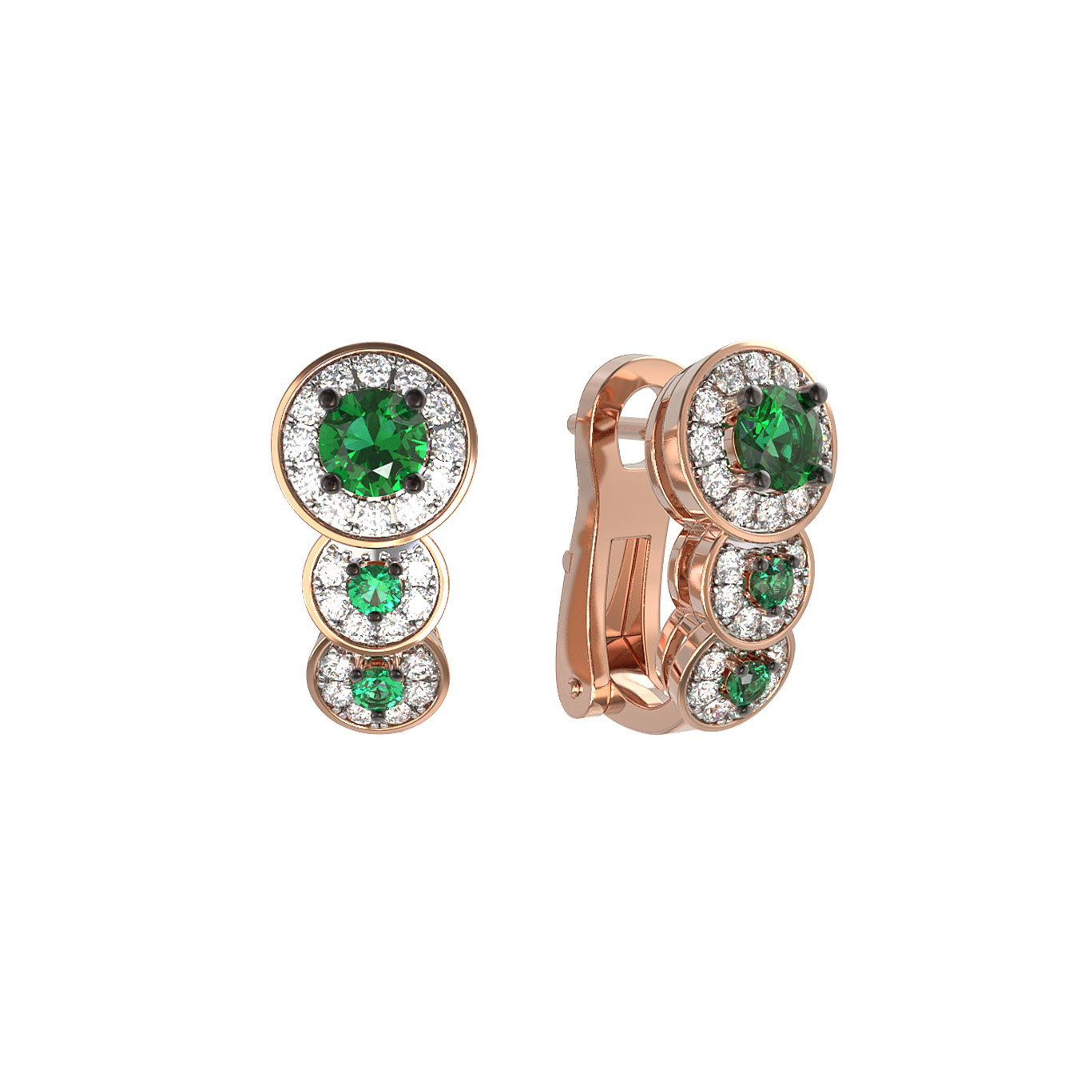 Эти серьги созданы для тех, кто ценит изысканность и внимание к деталям. Благородный красный оттенок золота подчеркивает насыщенность изумрудов и чистоту бриллиантов, создавая завершенный и стильный облик. Изделие универсально: оно подойдет как для женщин, желающих подчеркнуть свою индивидуальность, так и для мужчин, предпочитающих сдержанные и статусные украшения. Данная модель также представлена как часть комплекта, что позволяет собрать гармоничный ювелирный ансамбль.