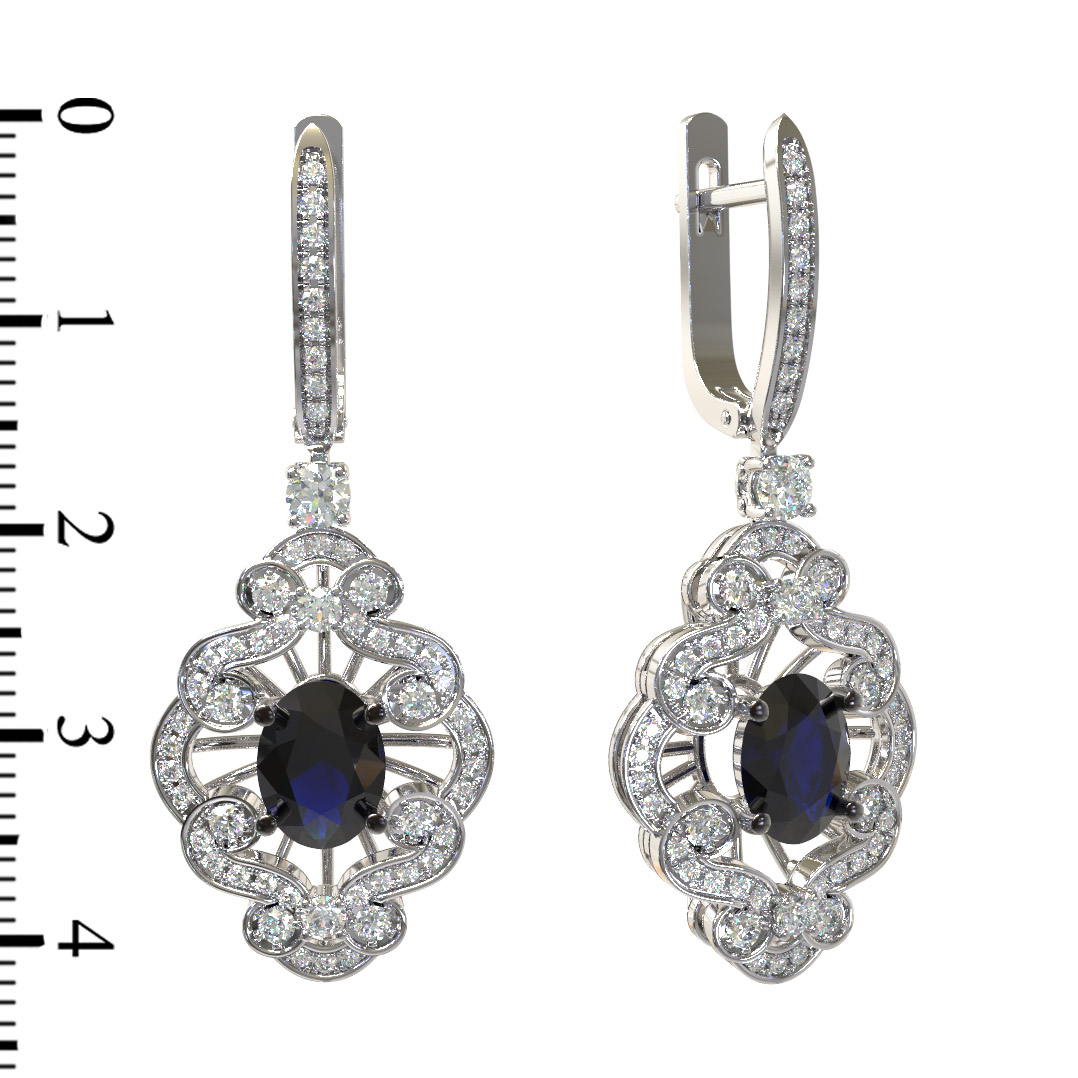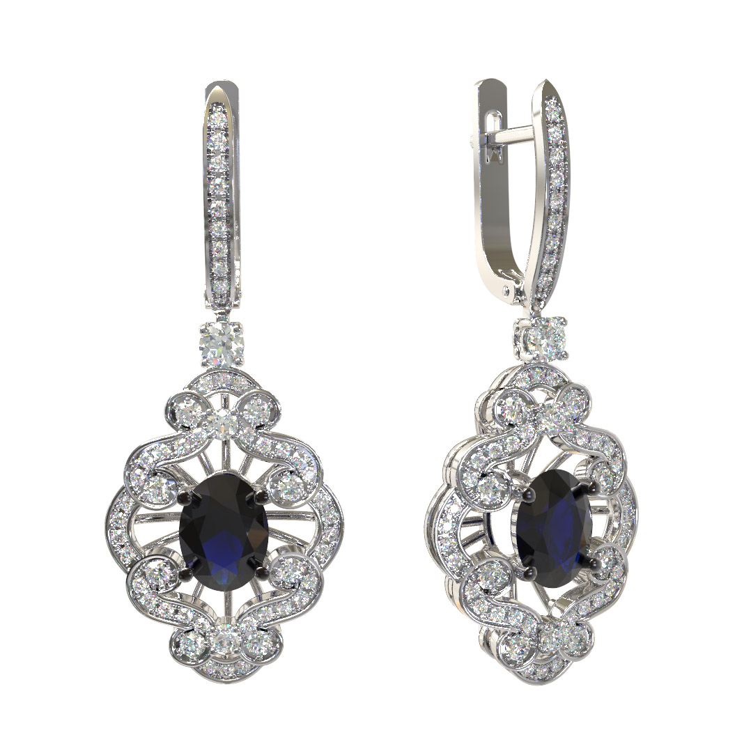 Серьги из белого золота c бриллиантами и сапфиром