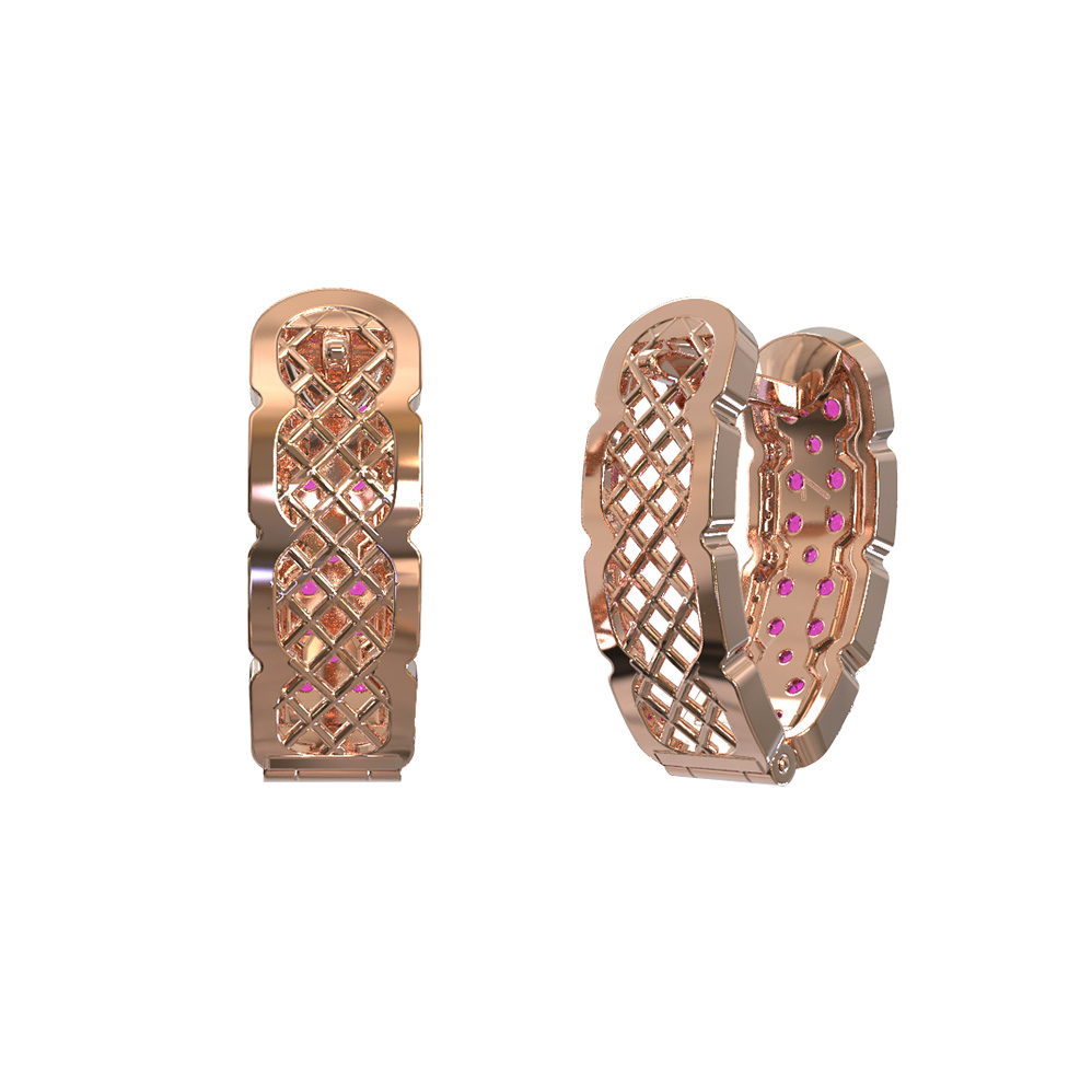 Великолепная игра света достигается за счет обрамления вставок искрящимися белыми бриллиантами. Всего в изделии использовано 122 вставки круглой формы, которые гармонично дополняют друг друга, создавая эффектный и динамичный рисунок. Такие серьги из красного золота одинаково подходят как для женщин, так и для мужчин, предпочитающих премиальные ювелирные решения с характером.