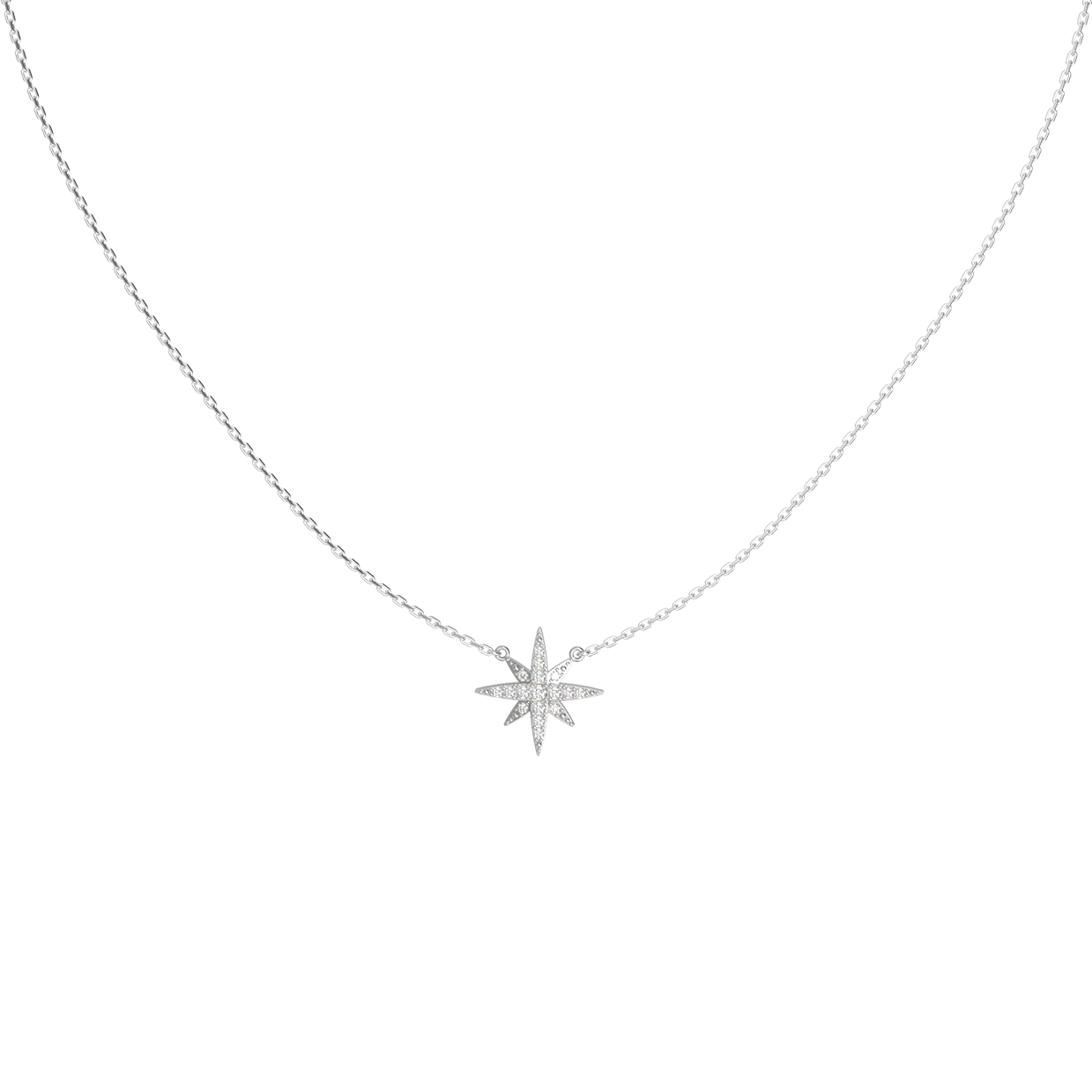 Центральным элементом композиции является подвеска в форме звезды, инкрустированная 51 бриллиантом. Камни белого цвета имеют круглую огранку, которая позволяет максимально раскрыть их природное сияние при каждом движении. Общее количество вставок обеспечивает деликатное, но заметное мерцание. Это колье из линейки De Luxe Бриллианты — Galaxy выполнено в минималистичной манере, что позволяет носить его ежедневно или дополнять вечерние наряды. Изделие также отлично подходит для создания гармоничных комплектов с другими украшениями.